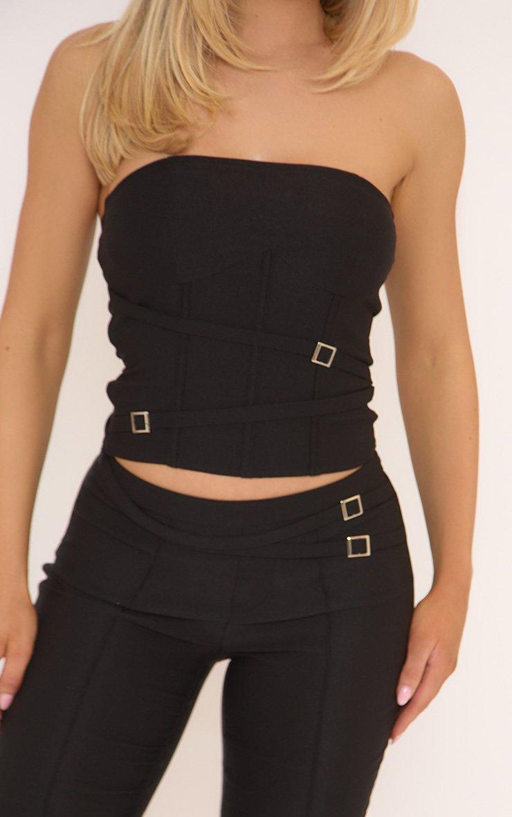 Low Rise Belt Detail Straight Leg Trousers In Black