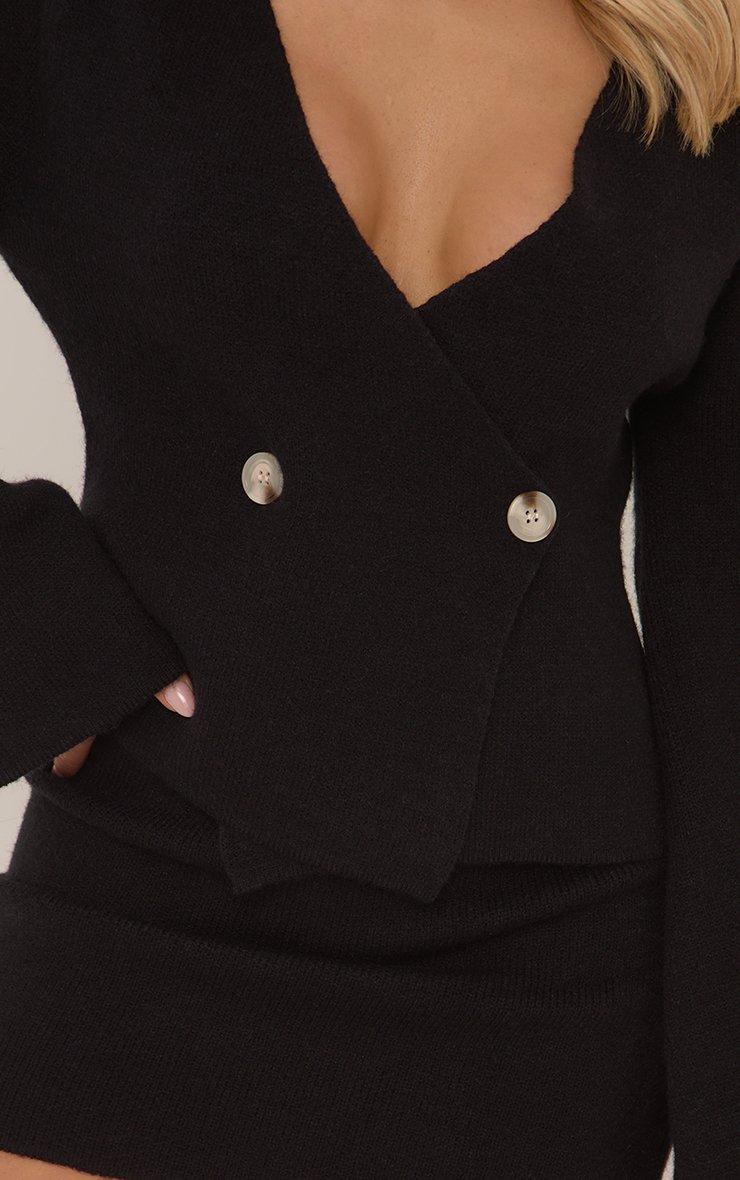 Level up your look with our Long Flute Sleeve Button Wrap Over Top In Black Thick Knit. This black button top long sleeve​ has an elevated vibe with its wrap over style and thick black knit. Style this knitted top with the matching skirt for chic look that takes you effortlessly from brunch to bar.