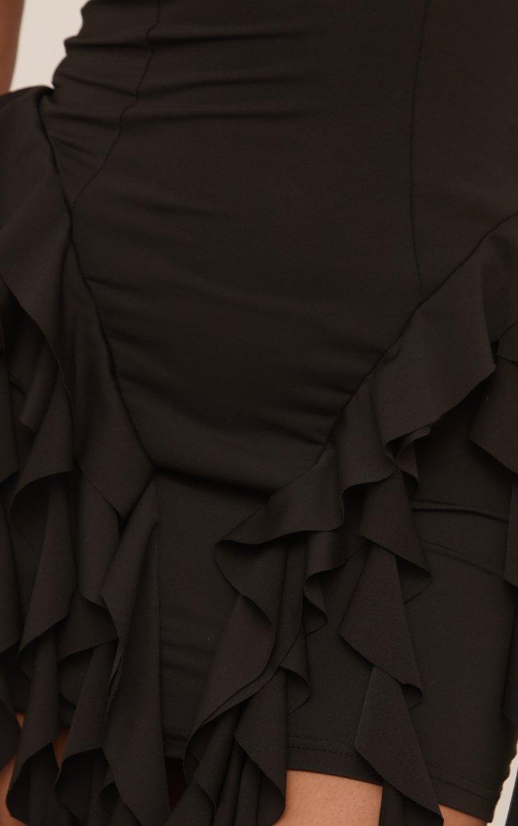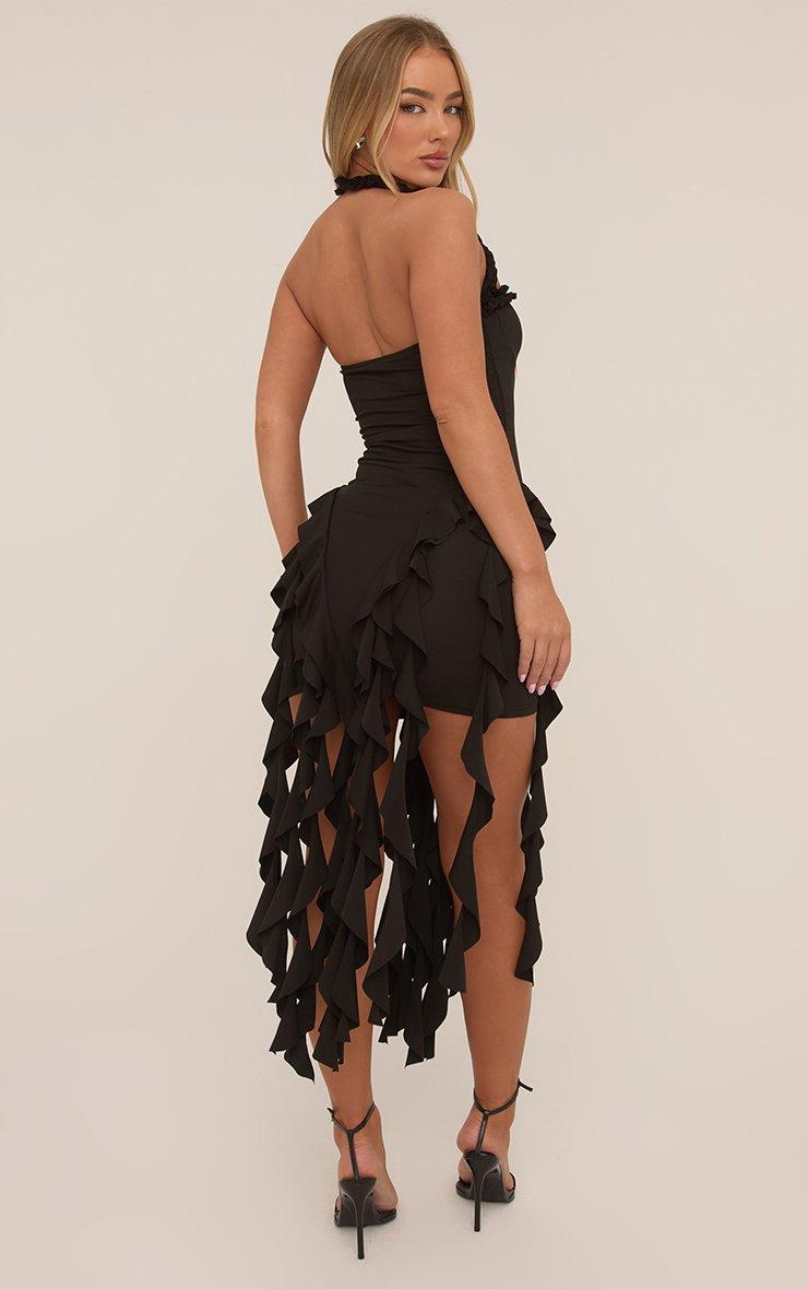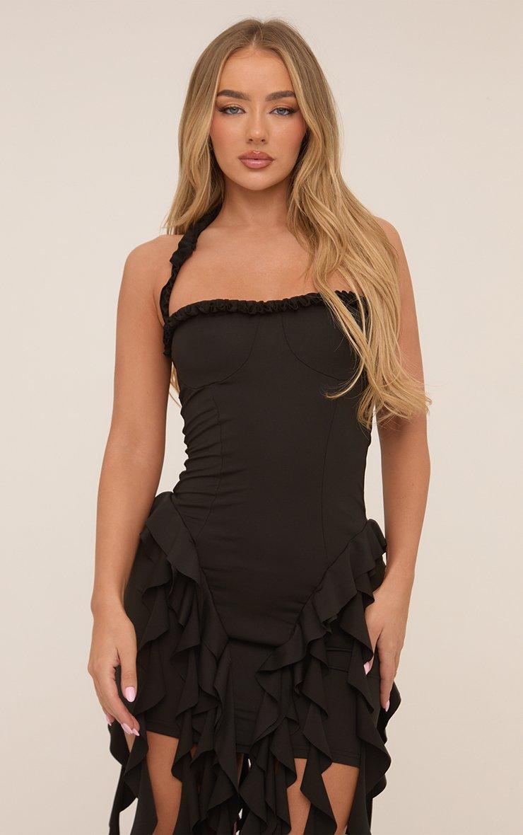 Halterneck Frilled Drape Detail Mini Dress In Black