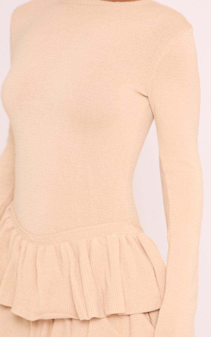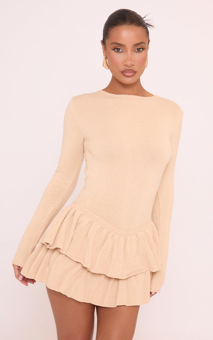 Long Sleeve Tiered Ruffle Playsuit In Stone Knit