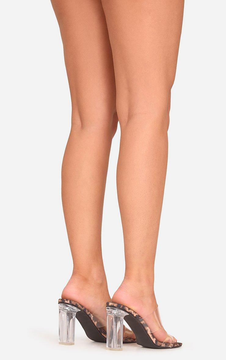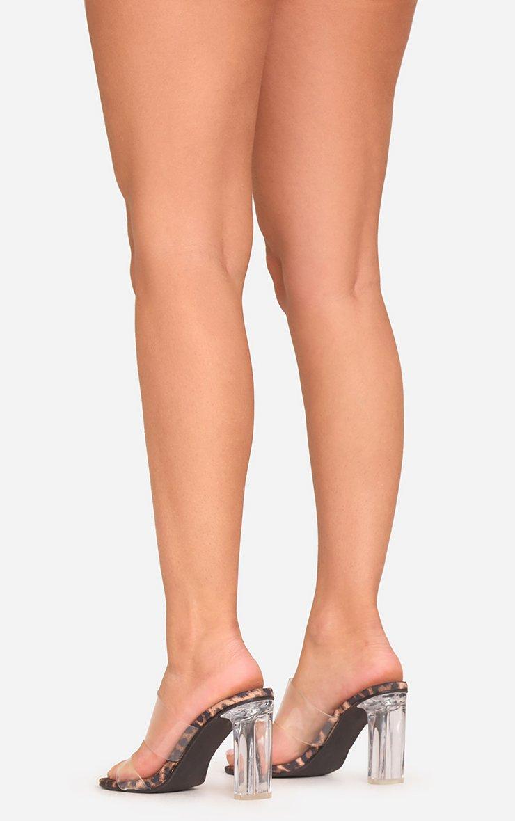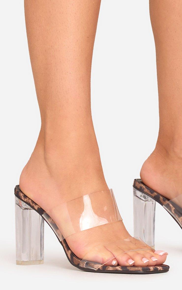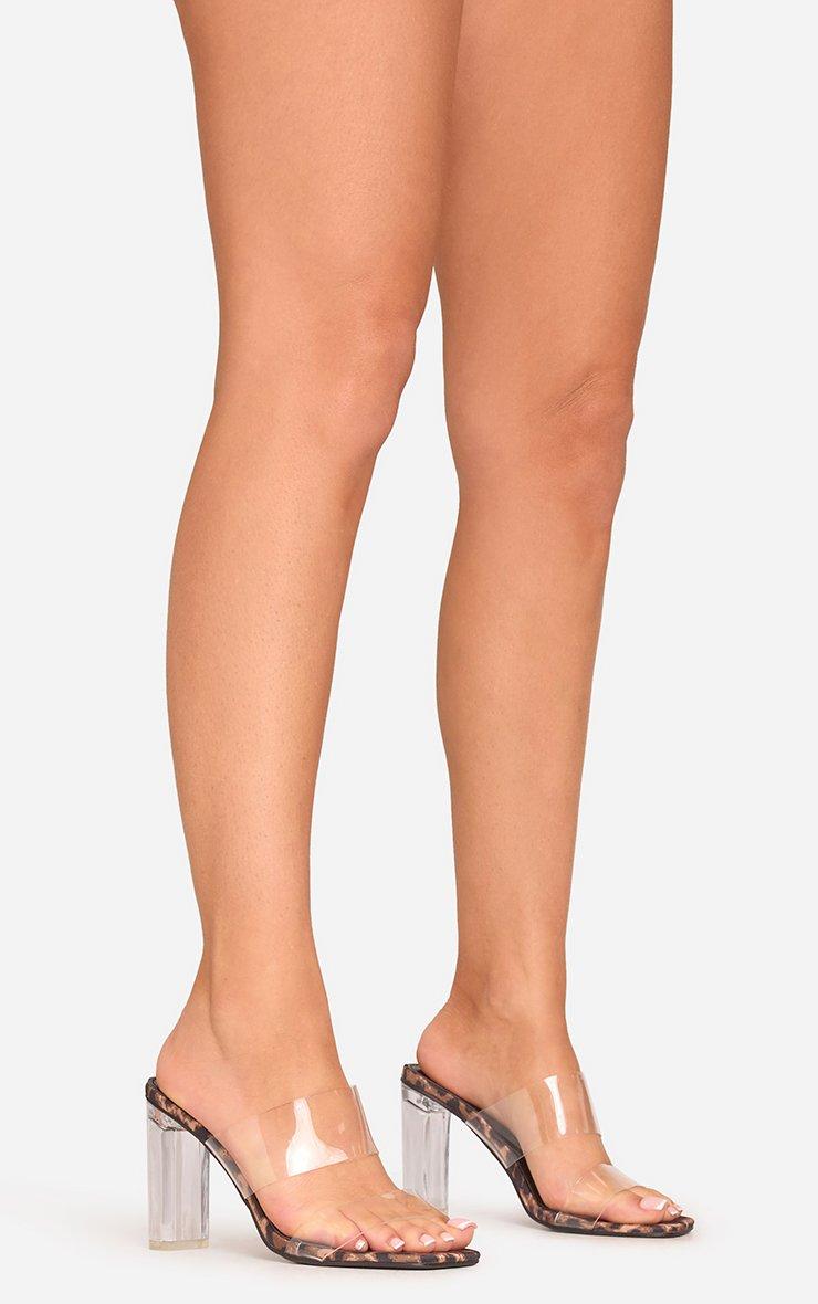 Jaxon Double Clear Perspex Strap Block Heel Mule In Leopard Print