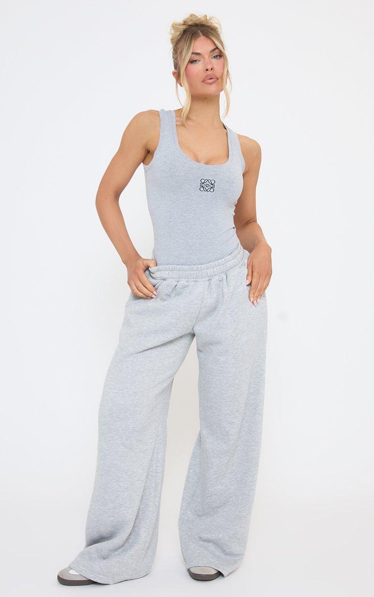 Show off your bold side, doll. Featuring a grey fabric with a scoop neck and swirl graphic design, this vest bodysuit is the perfect mix of comfort and statement-making style.