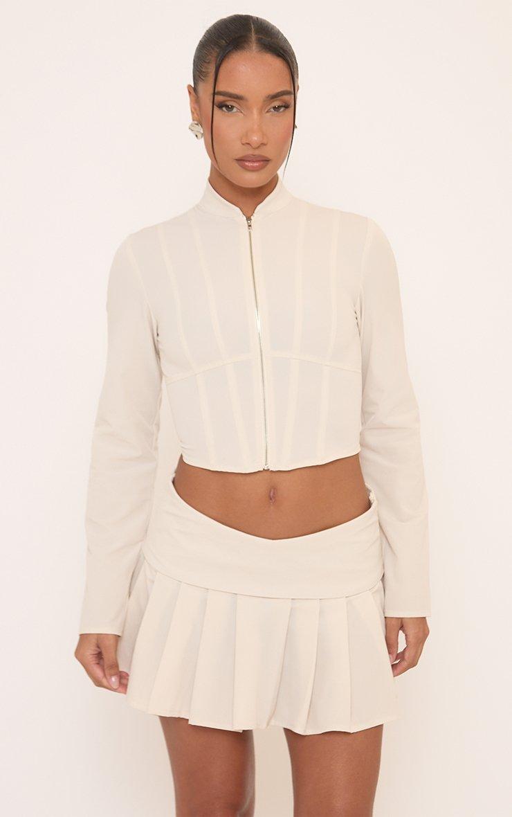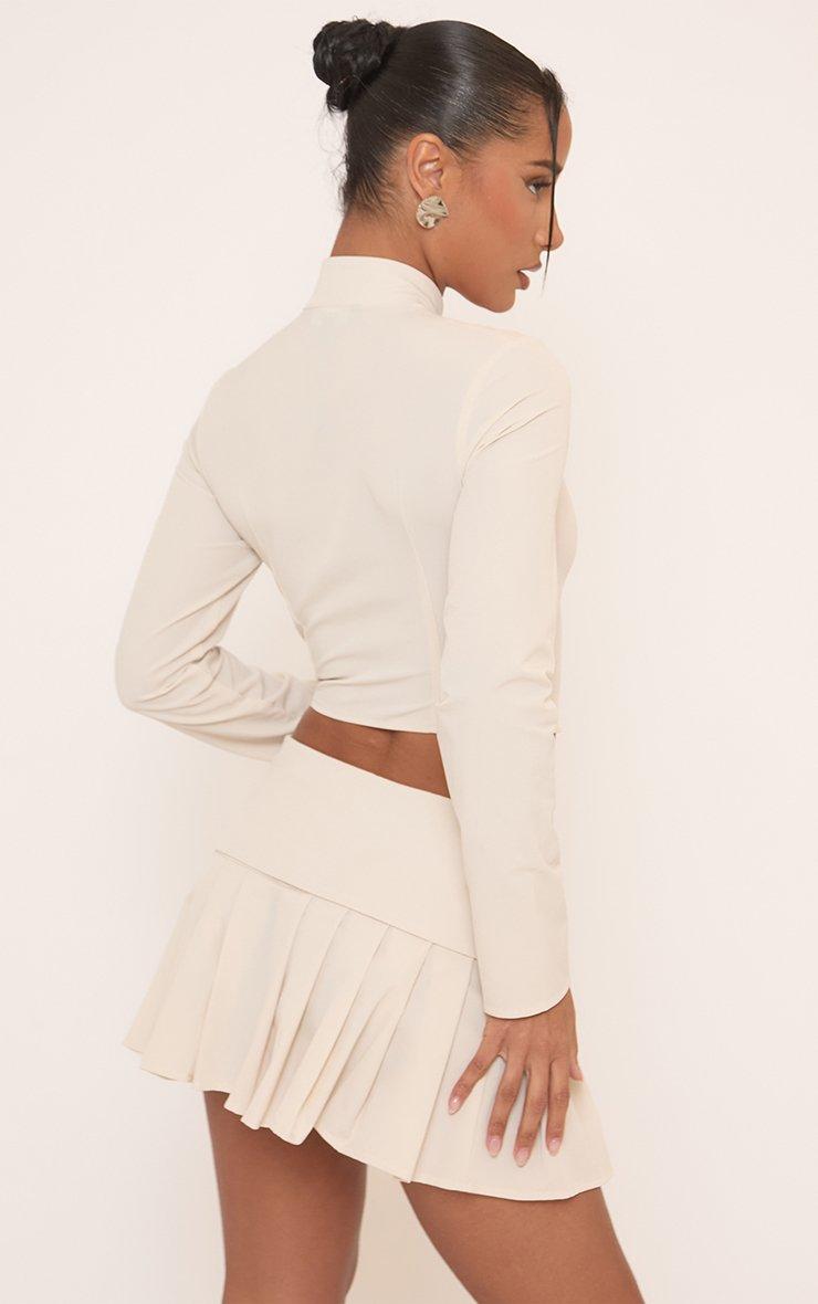 Dipped Waist Foldover Pleated Mini Skirt In Stone