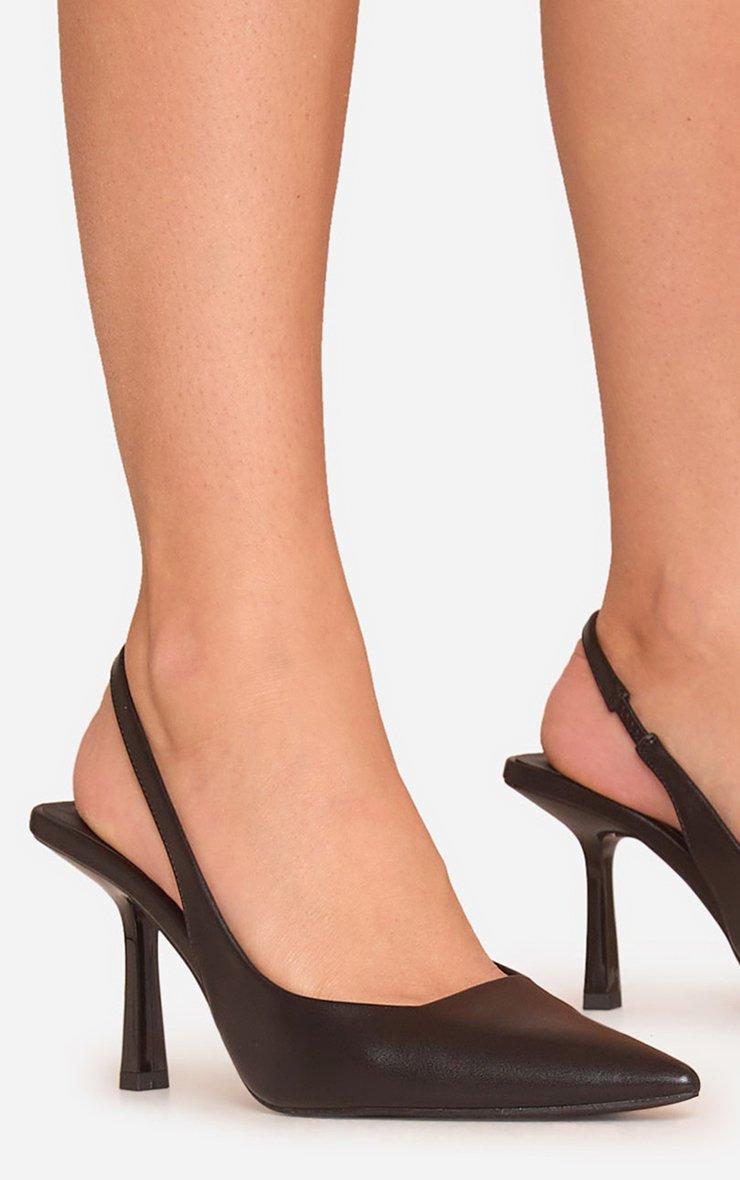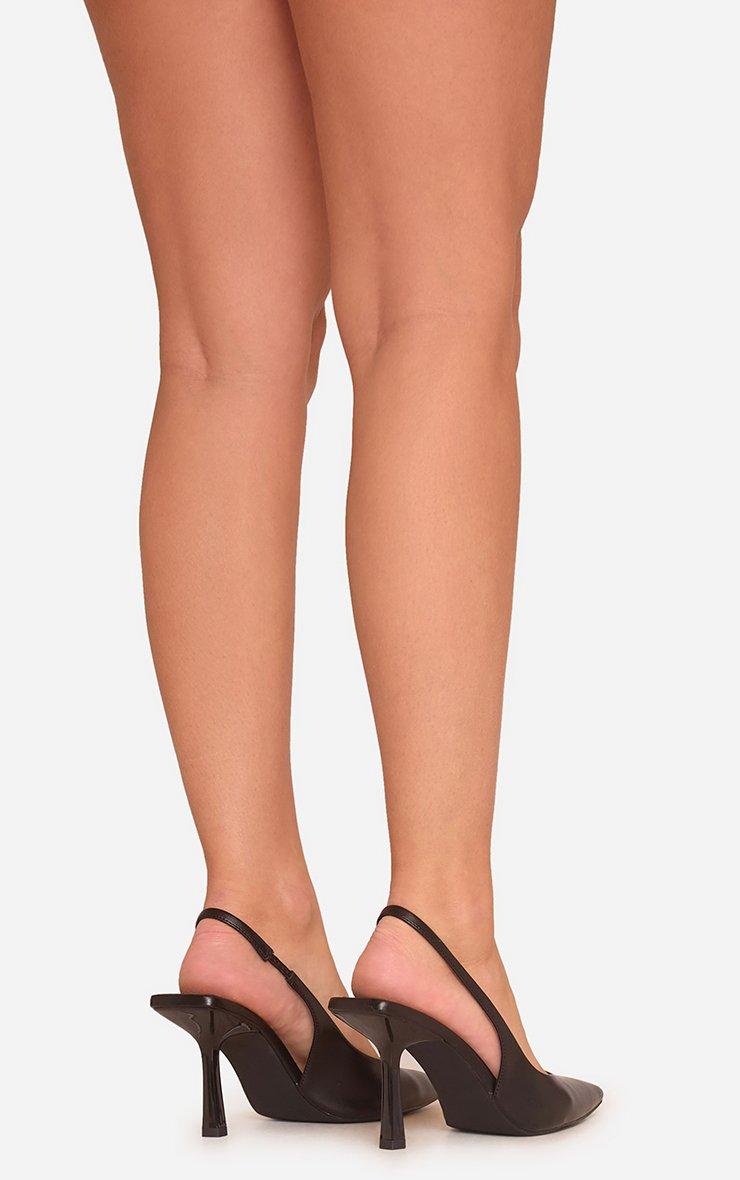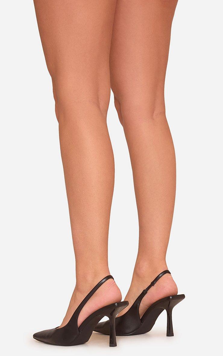 Keep it timeless, doll. Featuring black faux leather with a pointed toe and slingback design, these court heels are the perfect go-to for adding chic sophistication to any outfit.