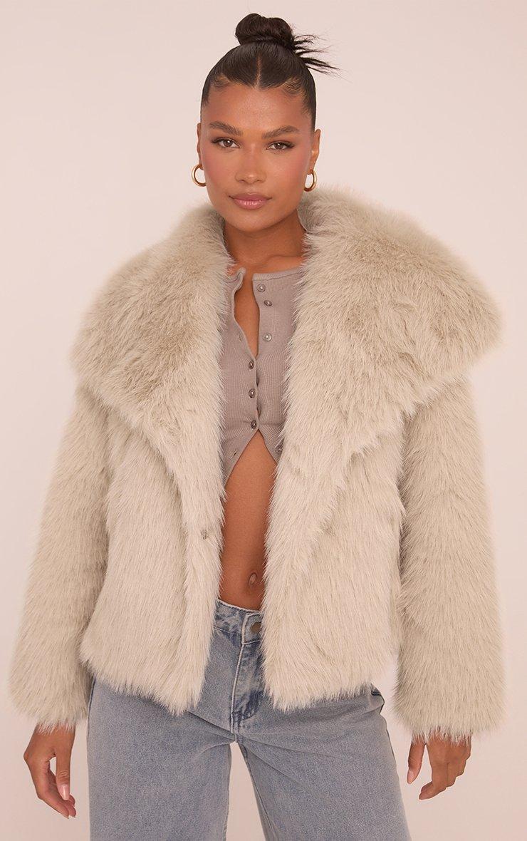 Oversized Collar Coat In Stone