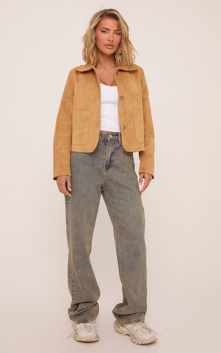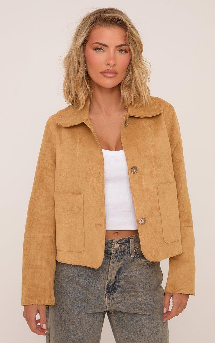 Reach fashion-girl status with our Pocket Detail Trucker Jacket in Stone Faux Suede. This cropped faux suede jacket boasts a classic trucker style in a dreamy stone tone and chic pocket details. Layer this trucker jacket over your fave fall fits for a head-turning look!