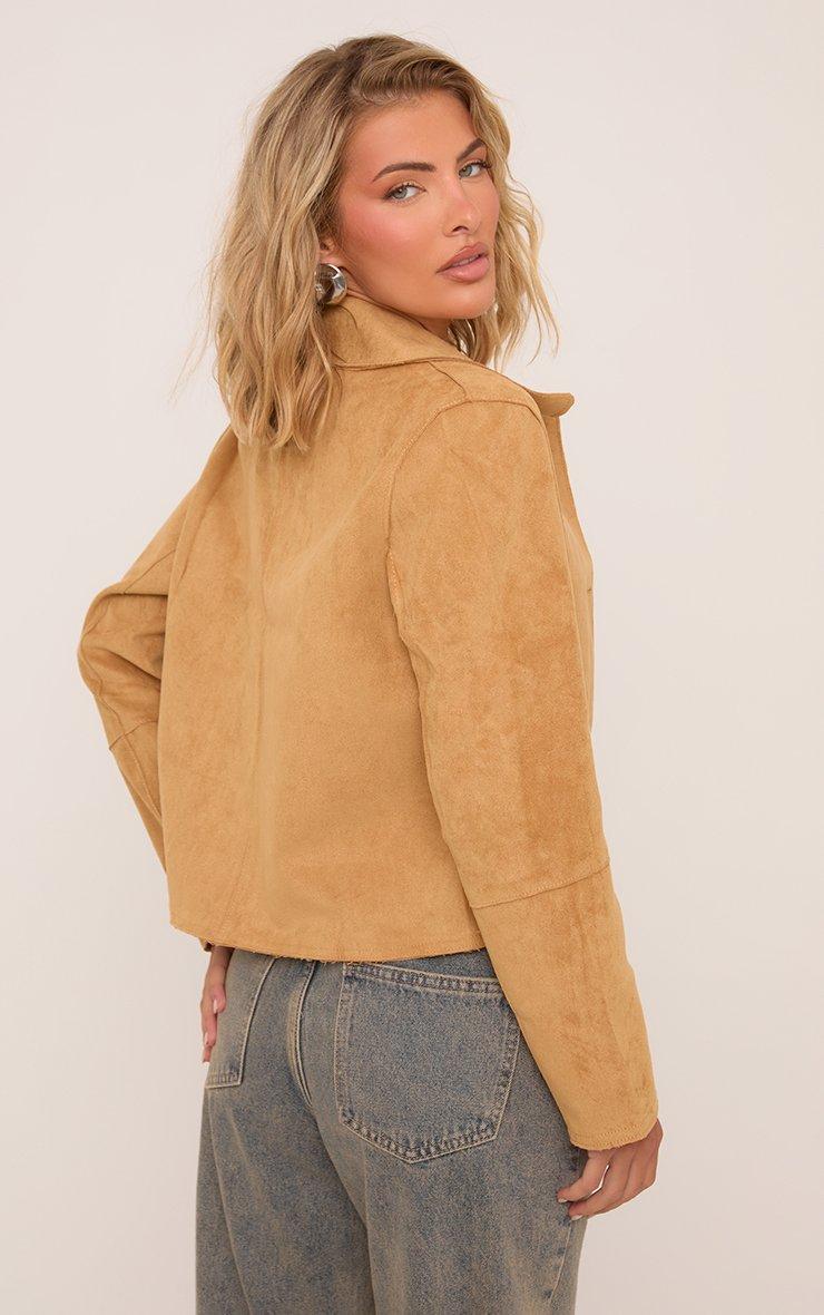 Pocket Detail Trucker Jacket In Stone Faux Suede