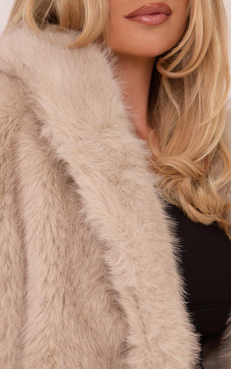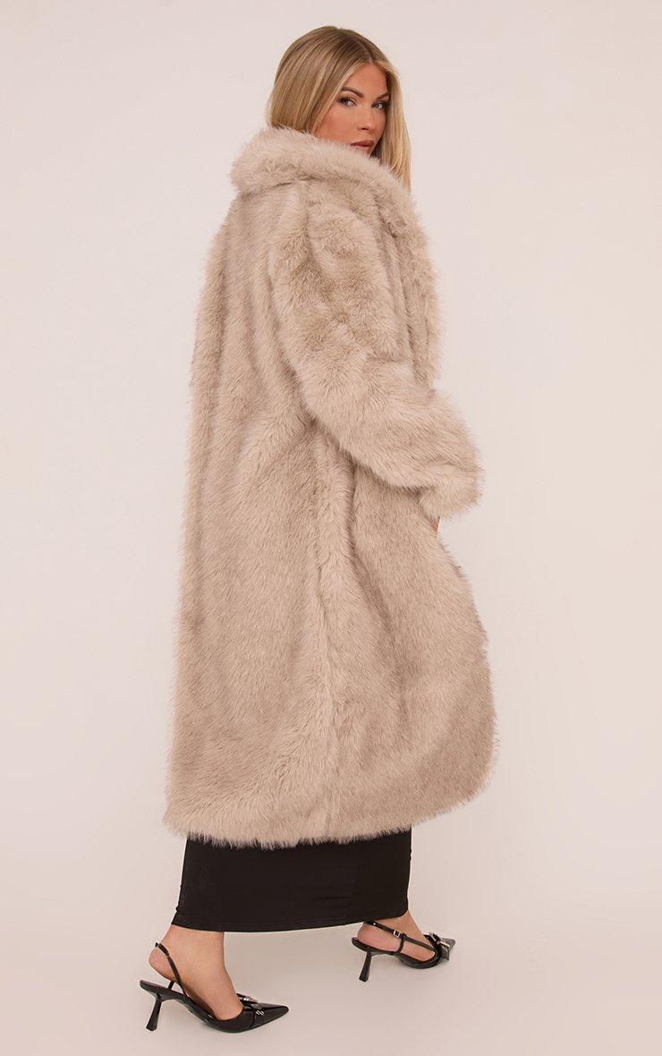 Oversized Longline Maxi Coat In Nude Faux Fur