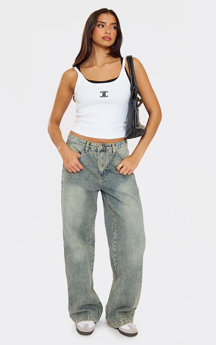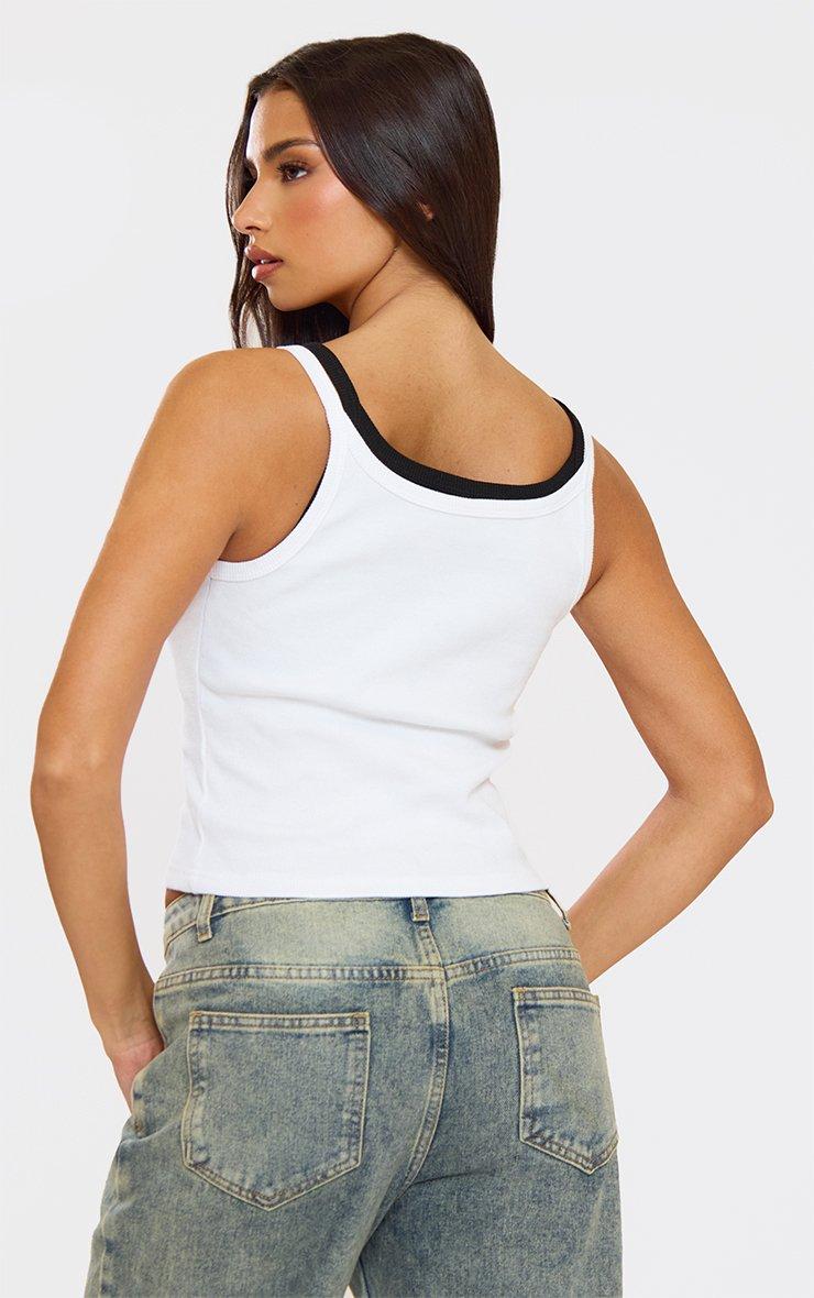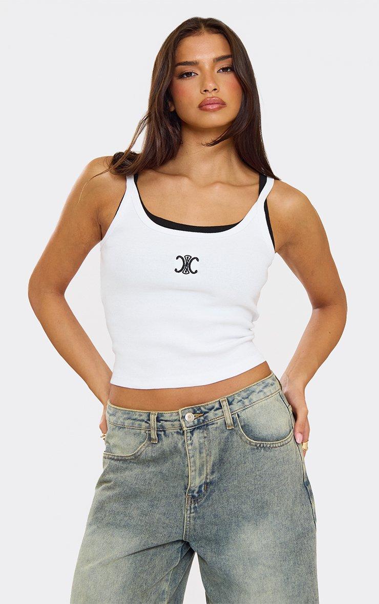 Brunch or bar, doll. Featuring a white material with double strap and logo detailing in a vest top design, this piece serves chic, bold vibes for your everyday looks.