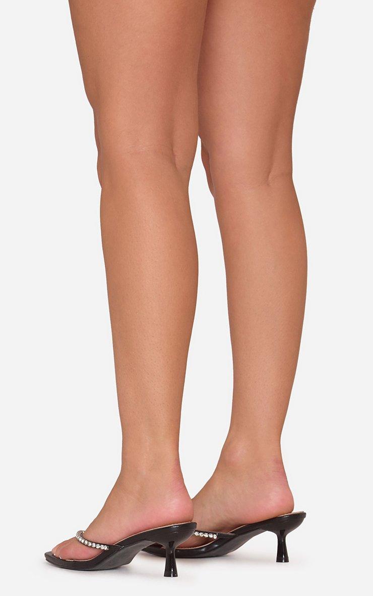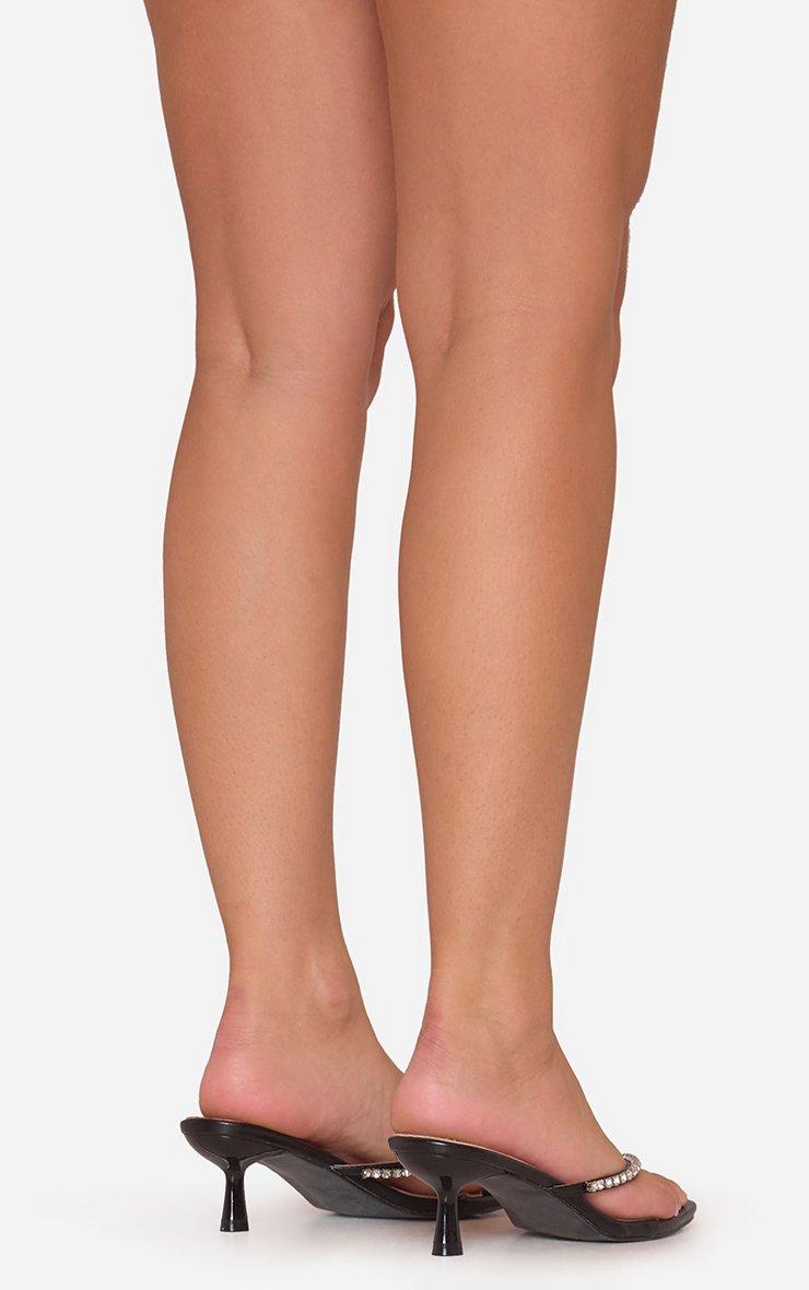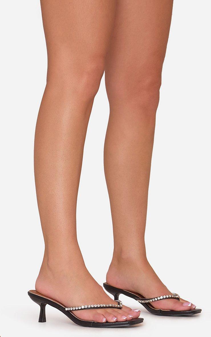 Vixen Diamante Thong Strap Heel Mule In Black Faux Leather