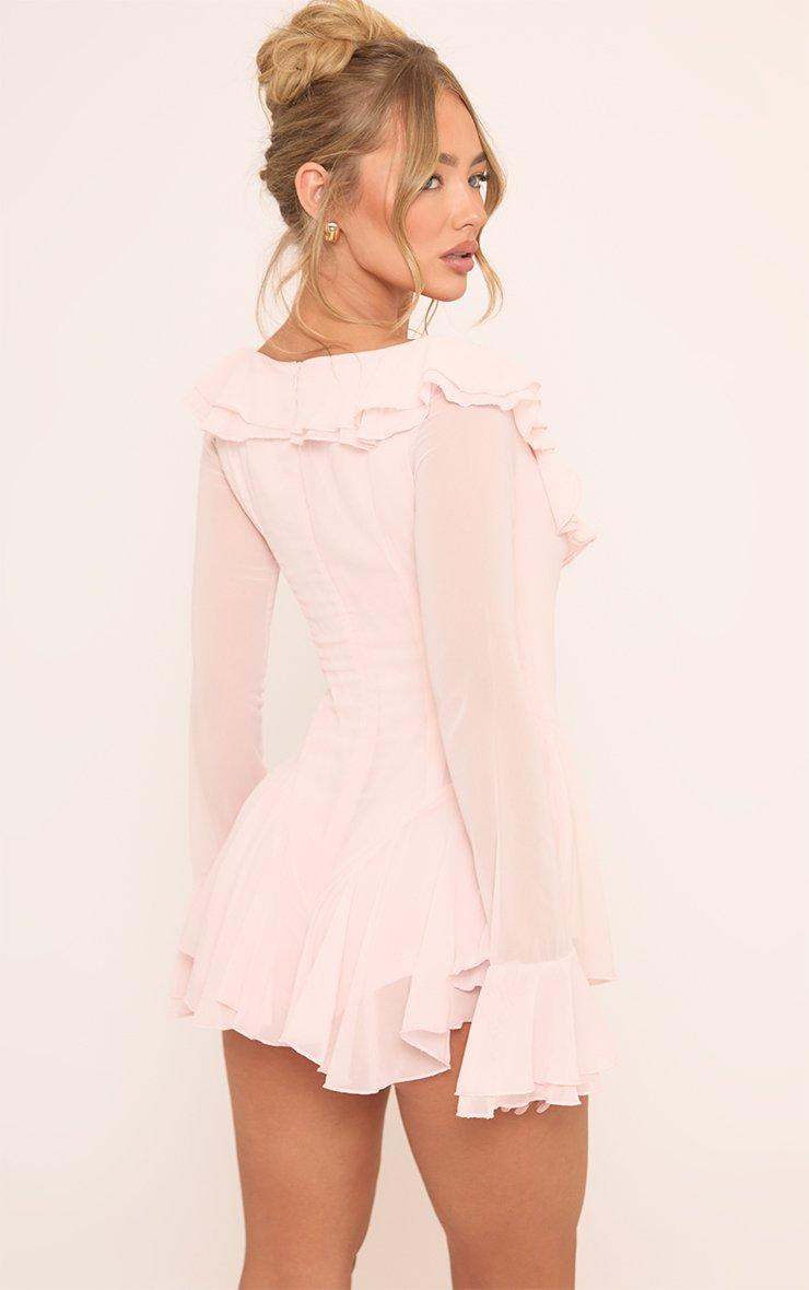 Off The Shoulder Frill Detail Micro Playsuit In Pink Chiffon