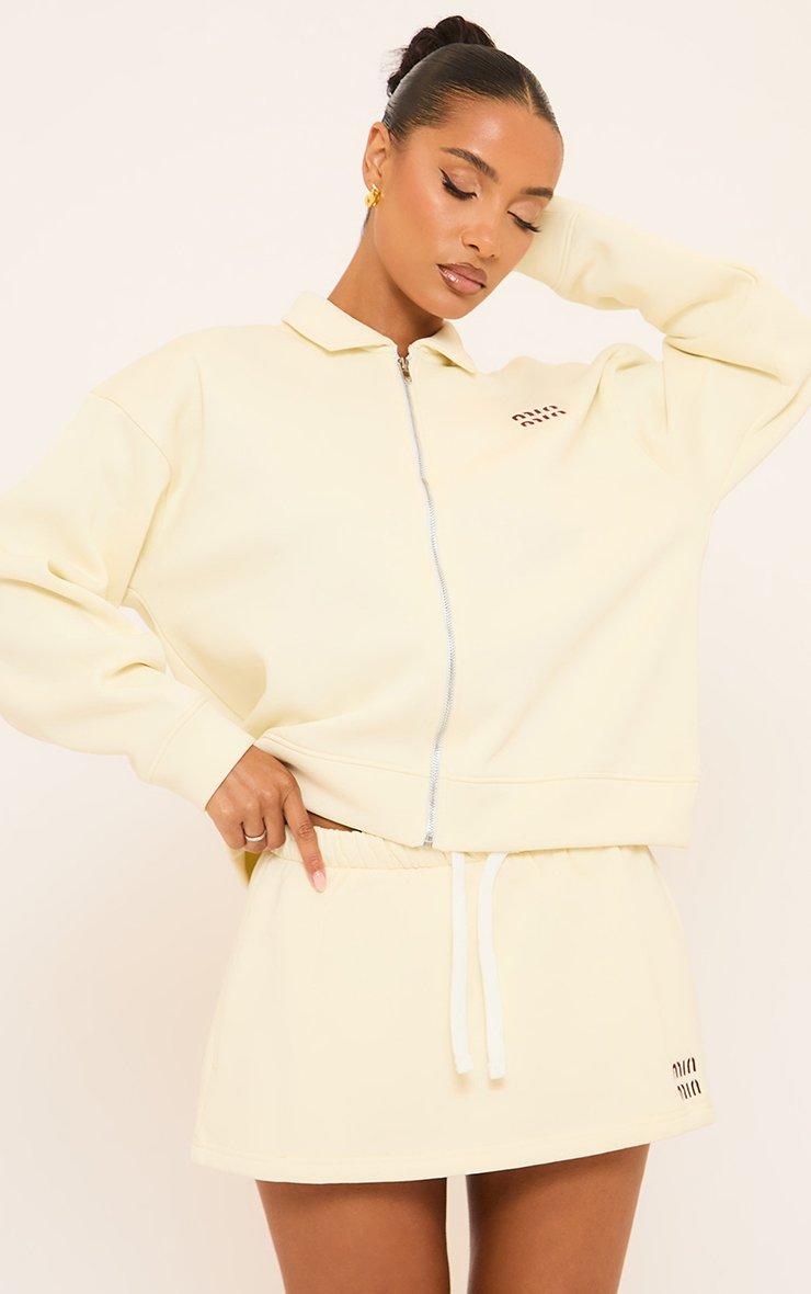 Long Sleeve 'Min Min' Detail Zip Up Front Collared Sweatshirt In Ivory