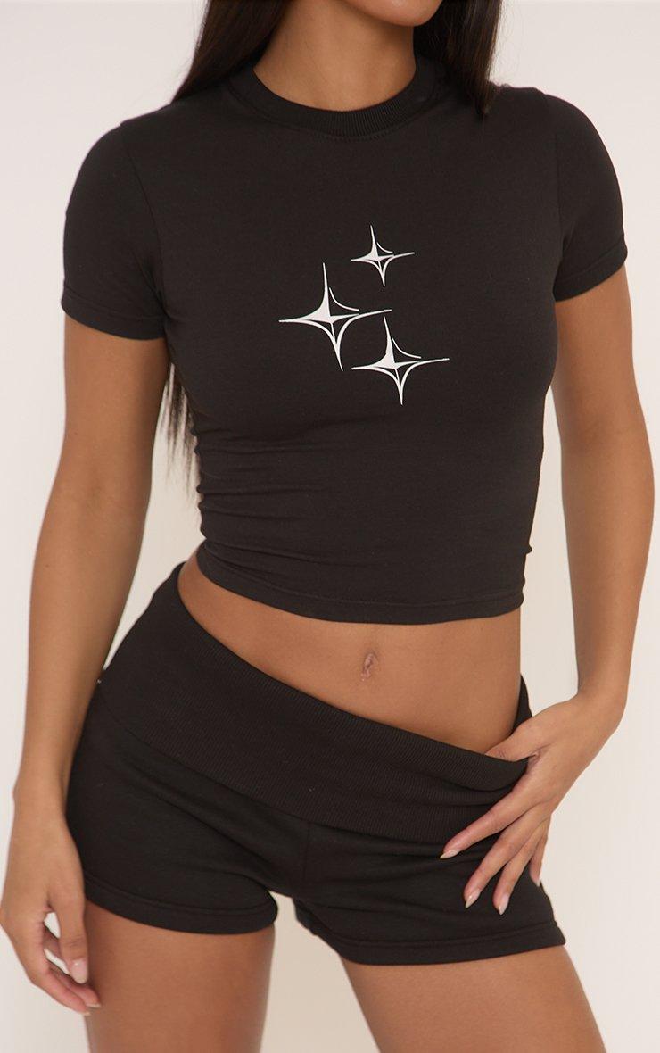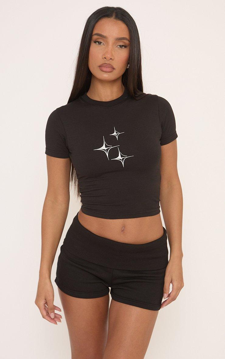 Short Sleeve Graphic Detail Fitted Baby Tee In Black