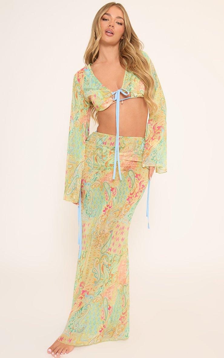 Turn heads in this cropped beauty featuring long flared sleeves and a contrast tie front detail. The multi paisley print adds a pop of colour and fun, making it a must-have for bold vibes.