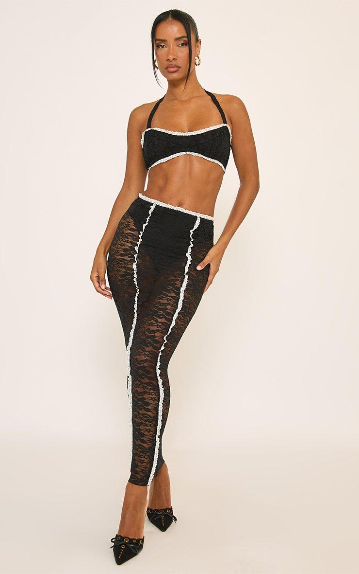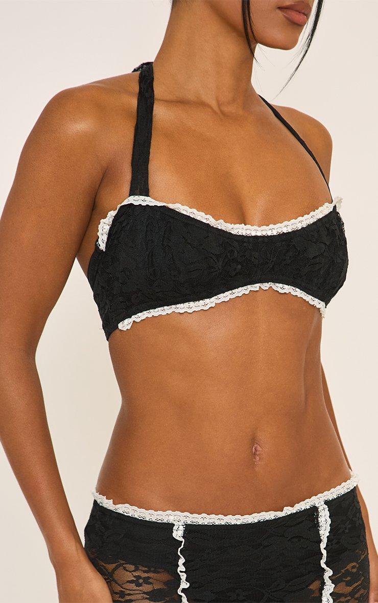 Halterneck Contrast Frill Trim Bralet In Black Lace