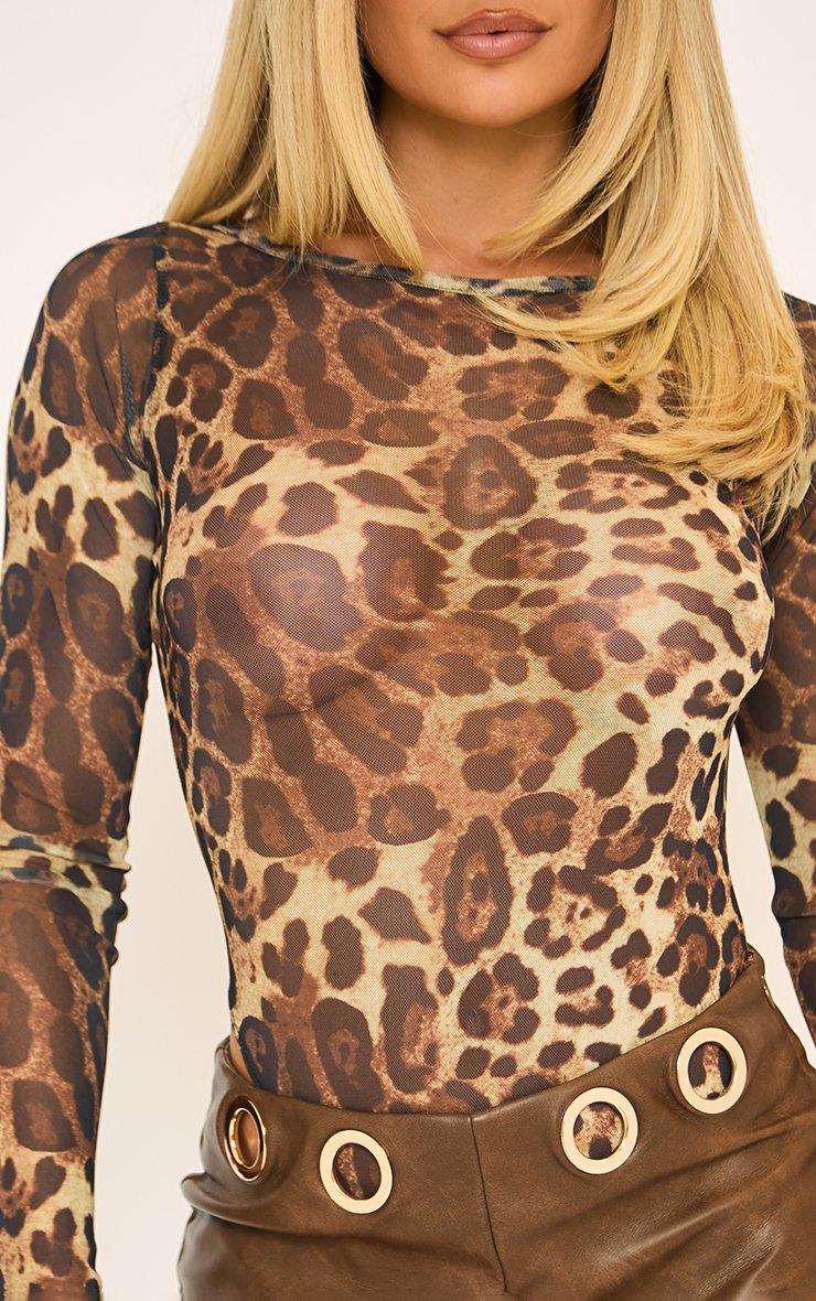 Long Sleeve High Neck Bodysuit In Leopard Print Mesh