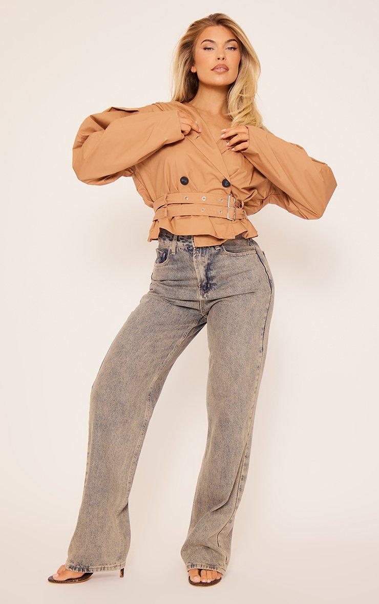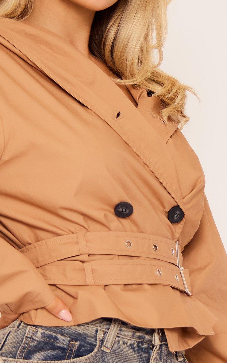 Long Sleeve Belt Detail Hooded Cropped Trench Jacket Inn Brown
