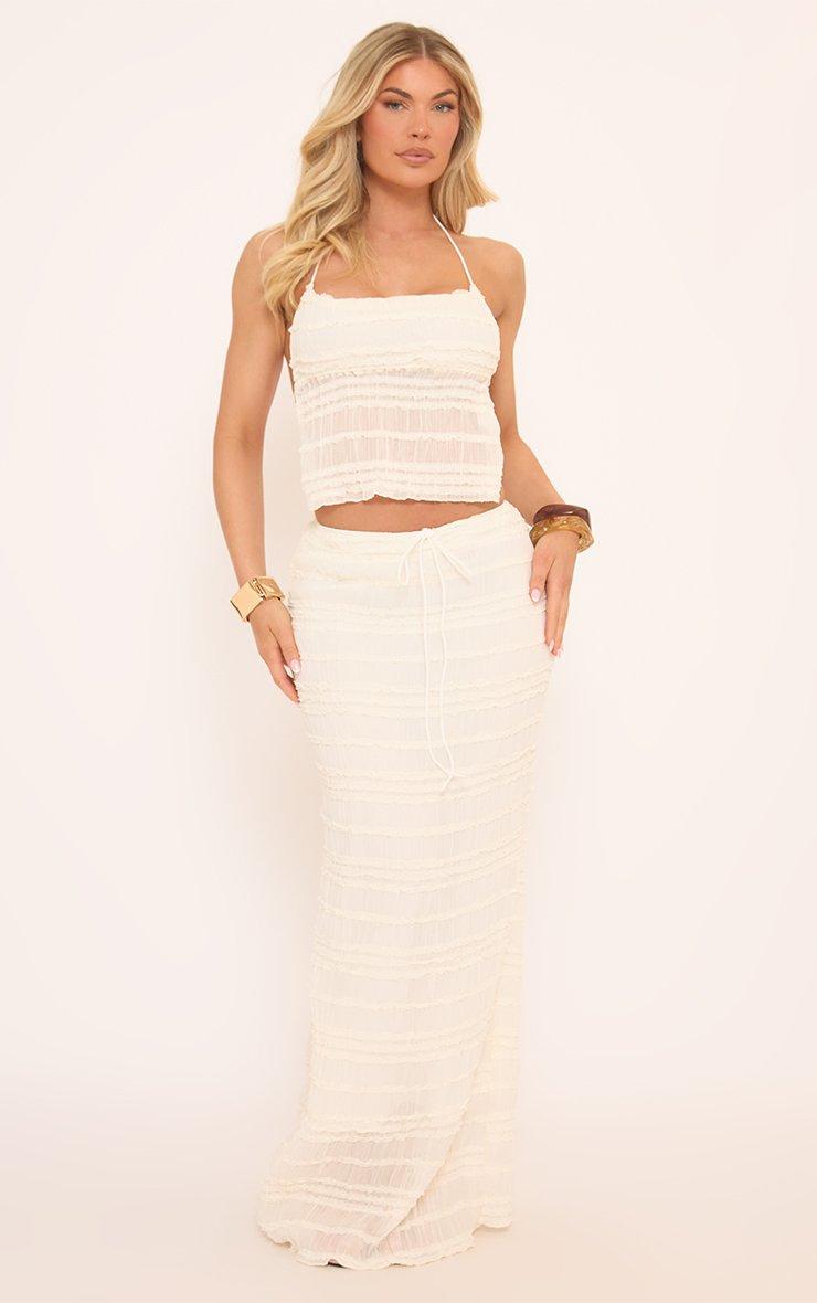 Halterneck Crop Top And Maxi Skirt Co-Ord Set In Cream