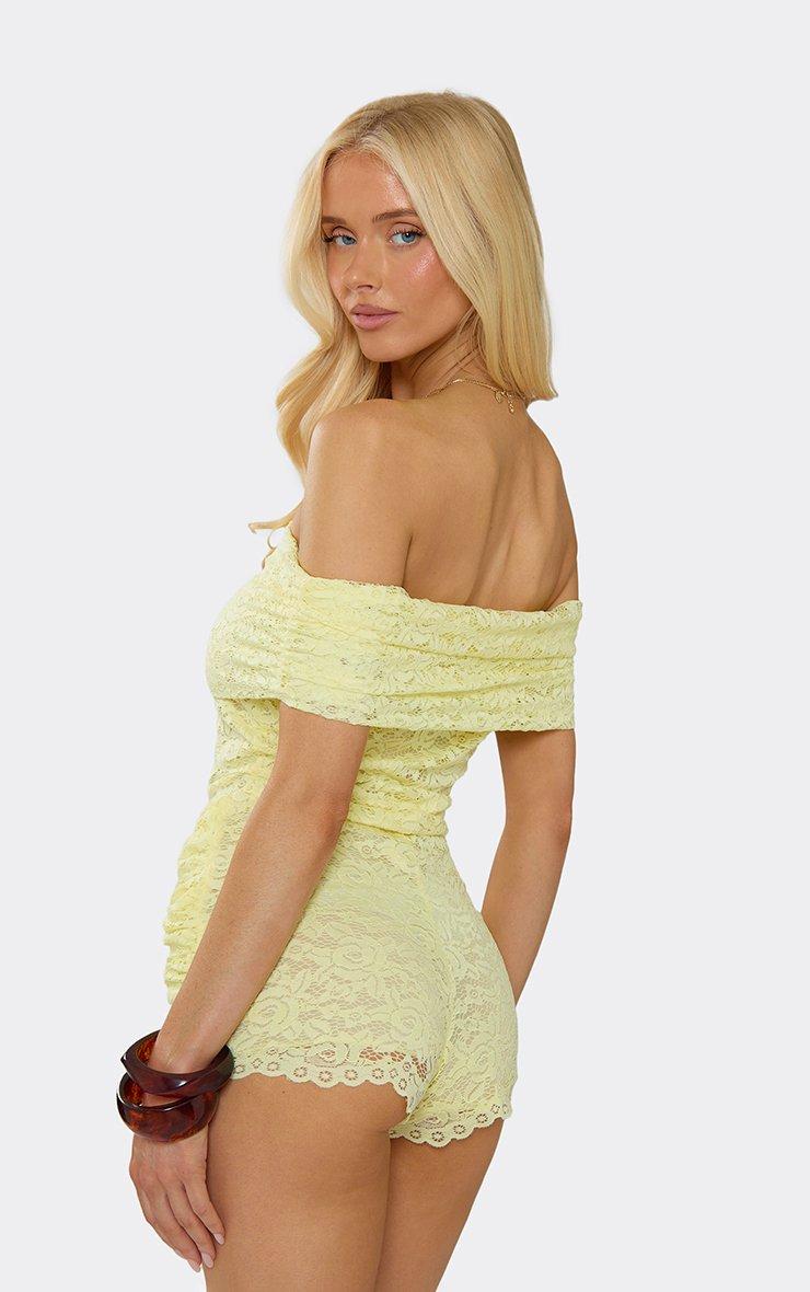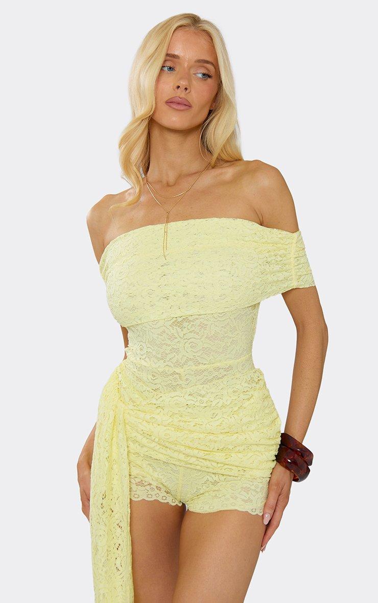 Step into your main character era in pink lace material featuring a bardot neckline and tie waist detailing. This sharp, high-octane playsuit delivers a total "coquette" aesthetic for a major it-girl finish. Style with platform sandals and silver jewelry for a polished vibe.