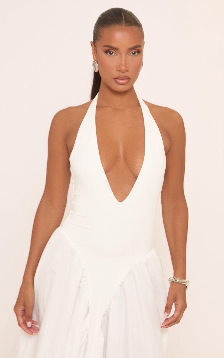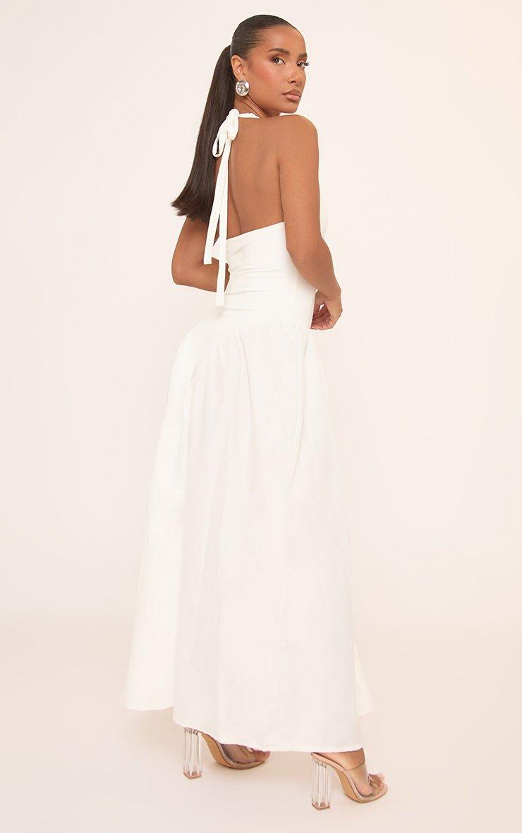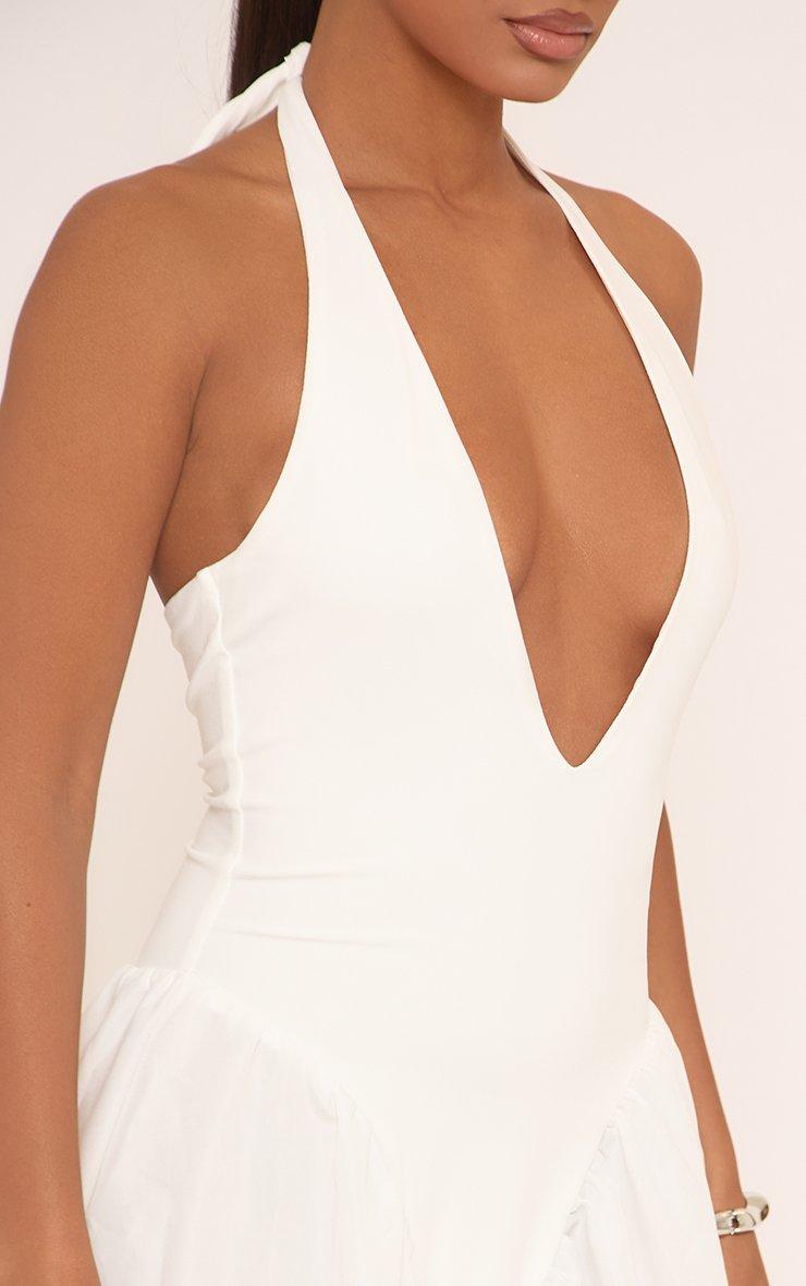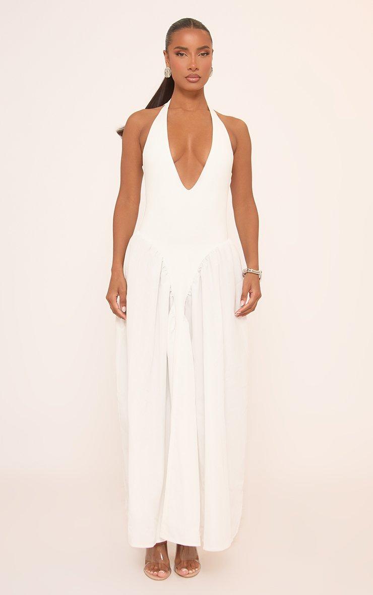Plunge Halterneck Dropped V Waist Detail Maxi Dress In White