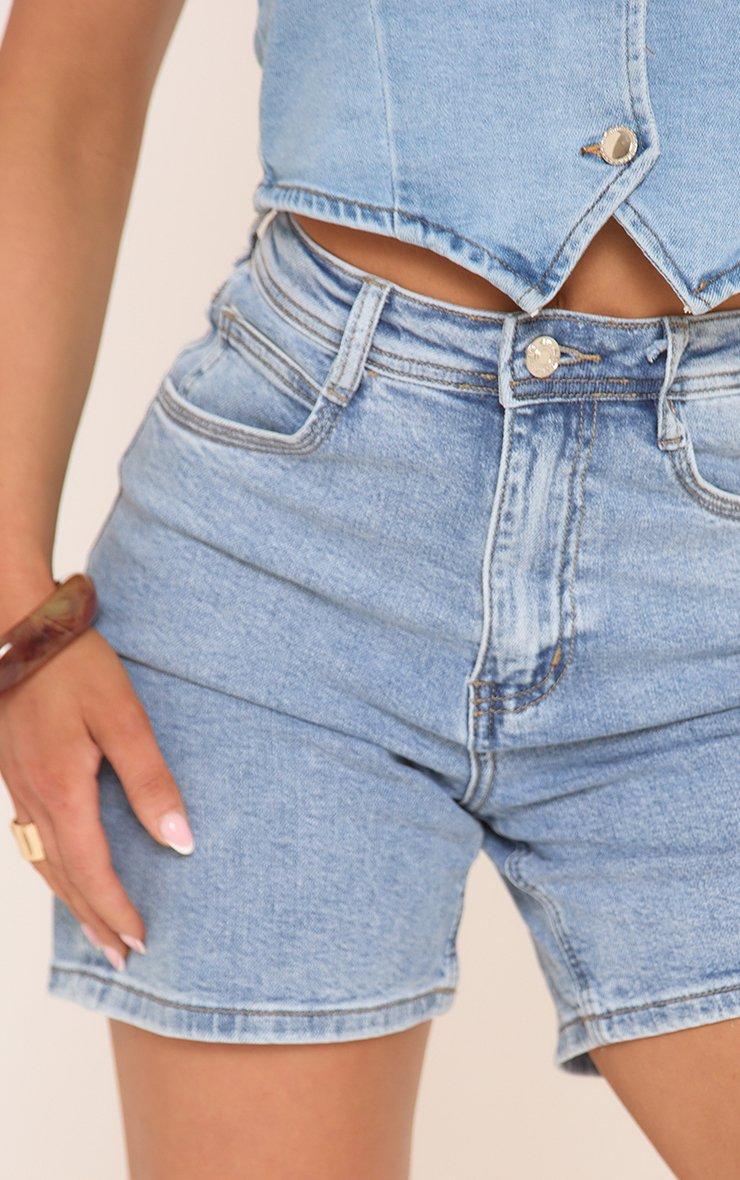 High Waist Longline Shorts In Blue Denim