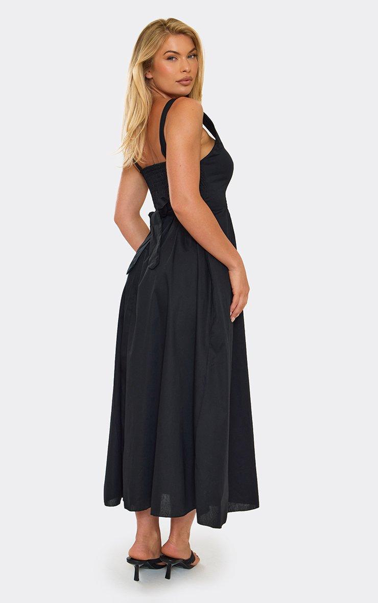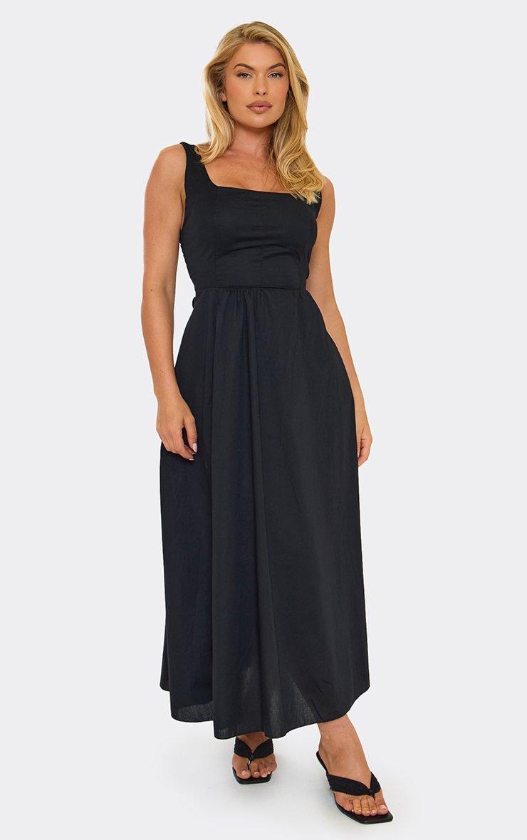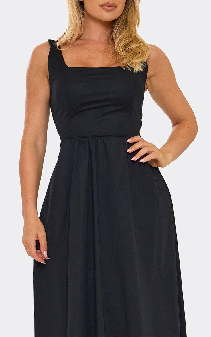 Square Neck Tie Back Detail Skater Midi Dress In Black