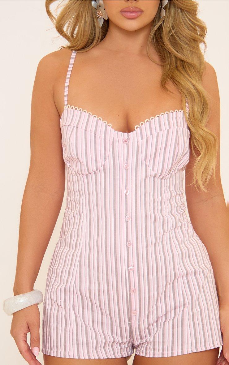 Strappy Trim Detail Micro Playsuit In Pink Stripe