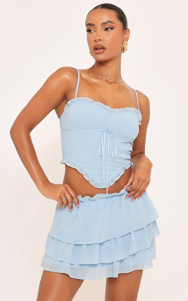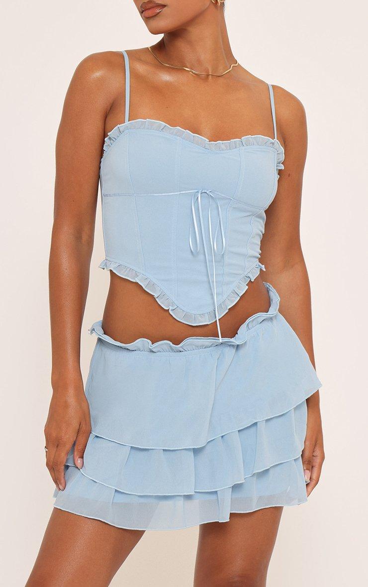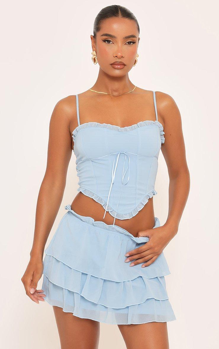 Fresh and flirty, doll. Featuring soft blue fabric with strappy straps and frill hem detailing, this top brings playful, chic vibes perfect for sunny days and standout style.