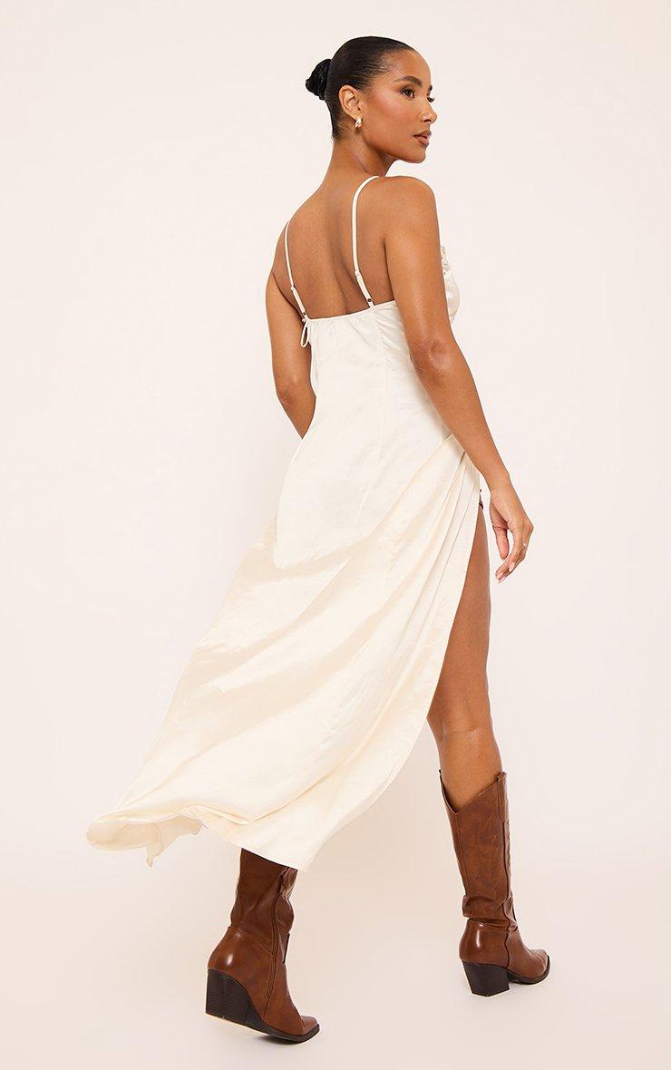 Lace Trim Button Front Maxi Top In Champagne