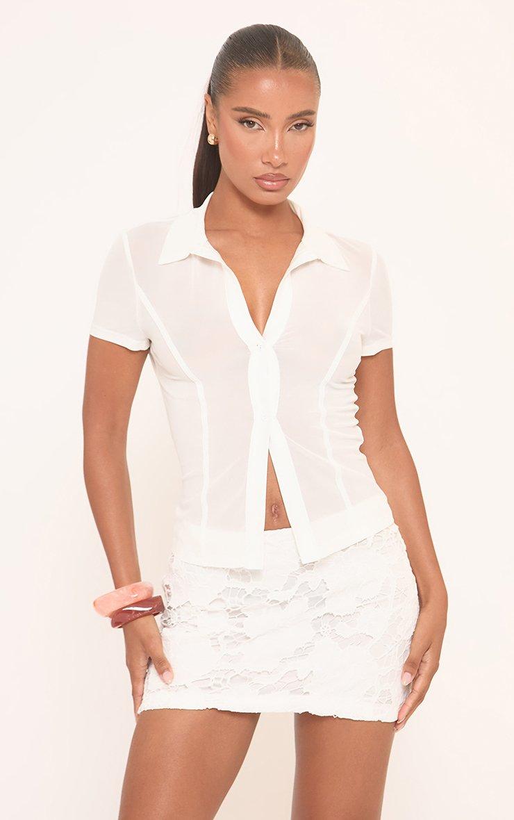 Fresh day vibes, doll? Featuring a white sheer material with short sleeves and button-up front detailing—this top brings breezy charm with a hint of edge. Perfect for effortless, chic looks.