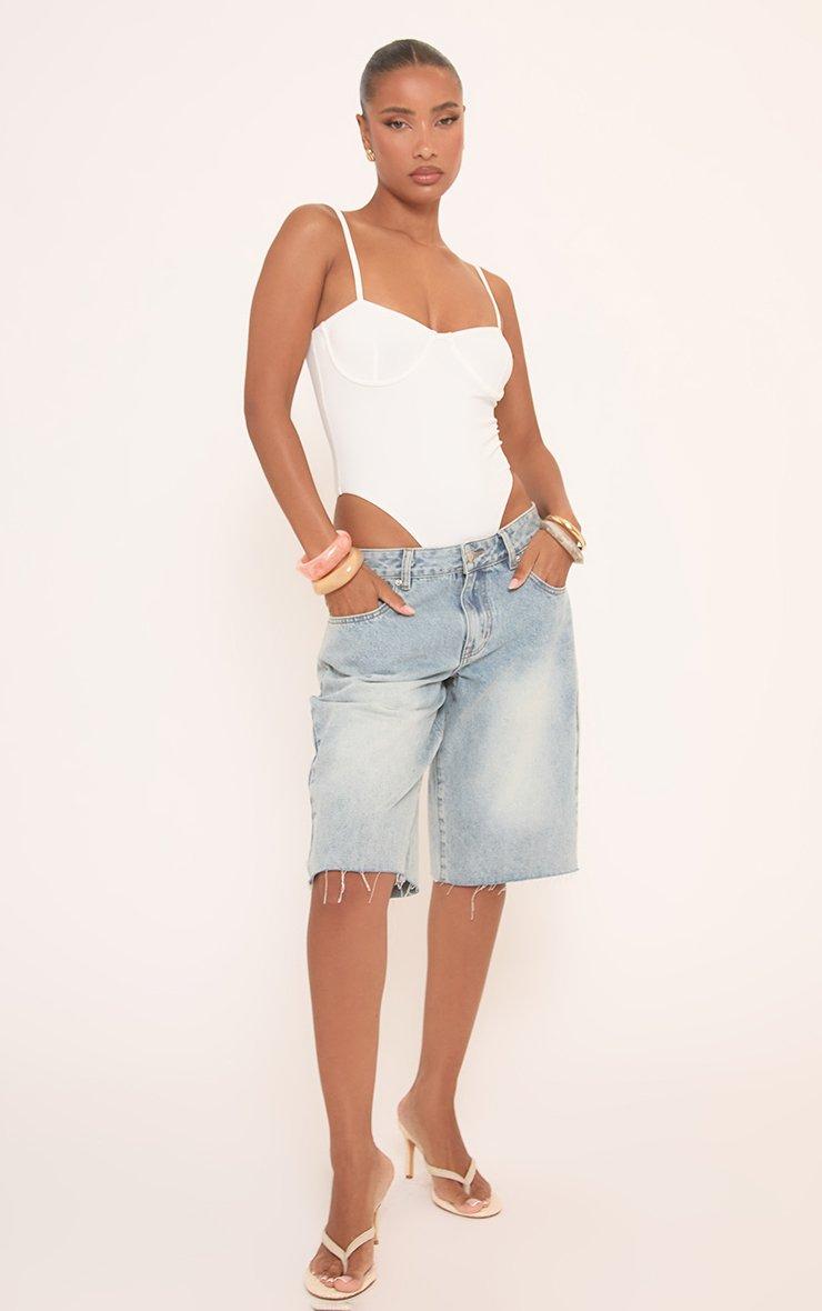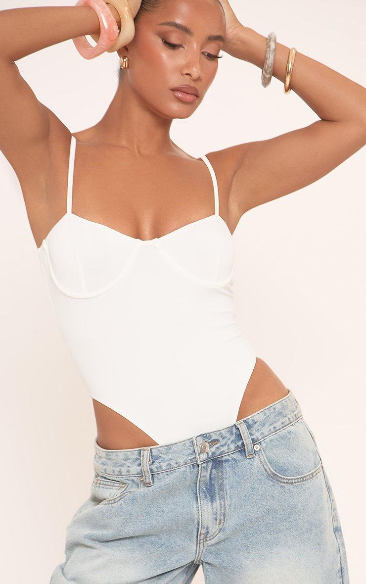 Strappy High Leg Detail Bodysuit In White Polyamide