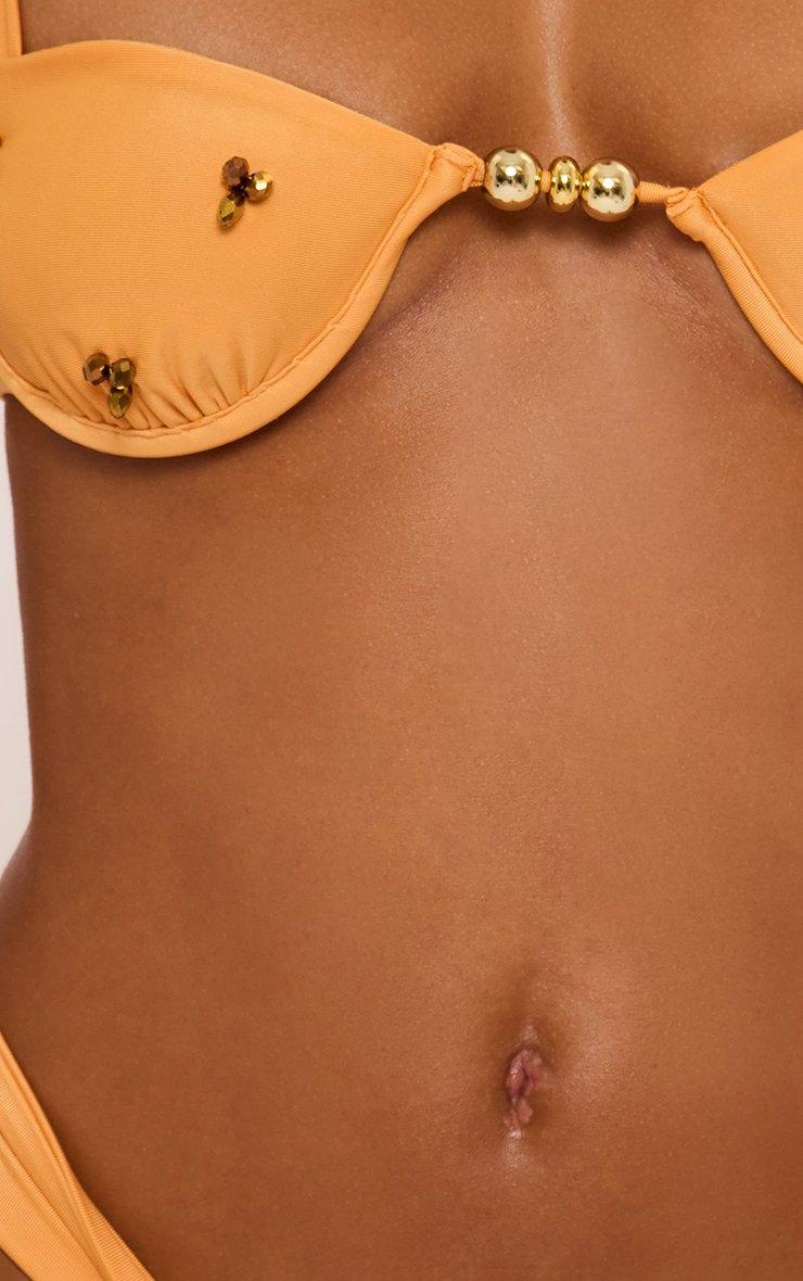 Beach day ready, doll! Featuring vibrant orange fabric with beaded detailing and structured underwired support, this bikini set brings all the bold vibes you need.