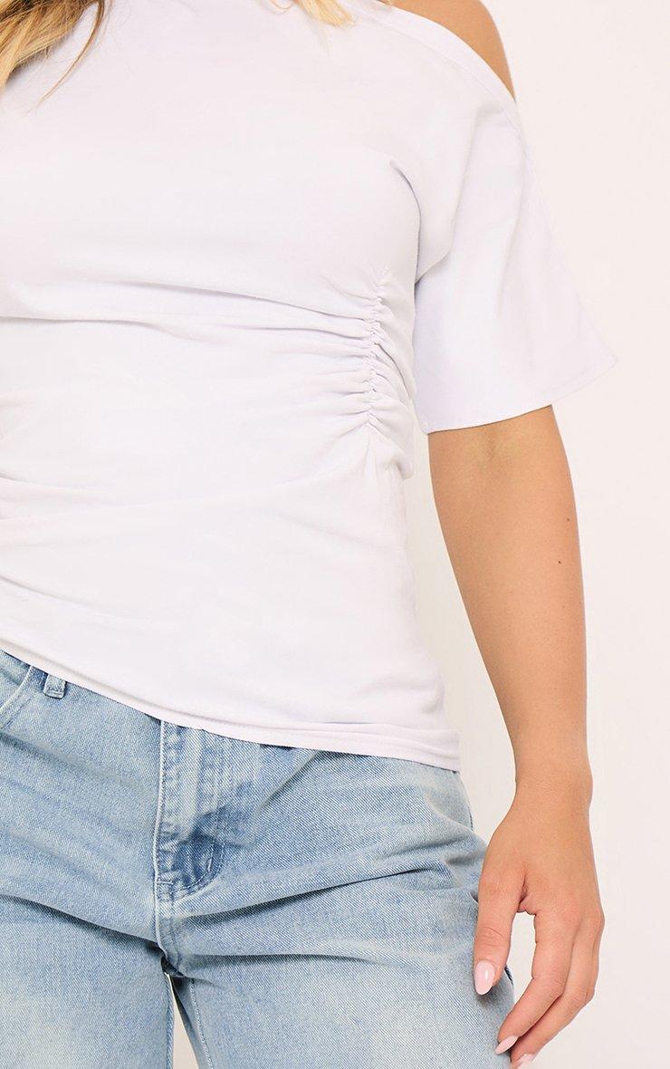 Off The Shoulder Slash Neck Ruched Top In White