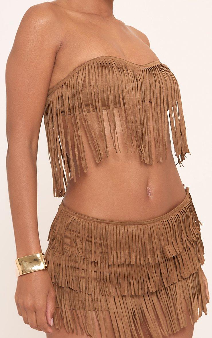 Bandeau Fringe Detail Top In Brown