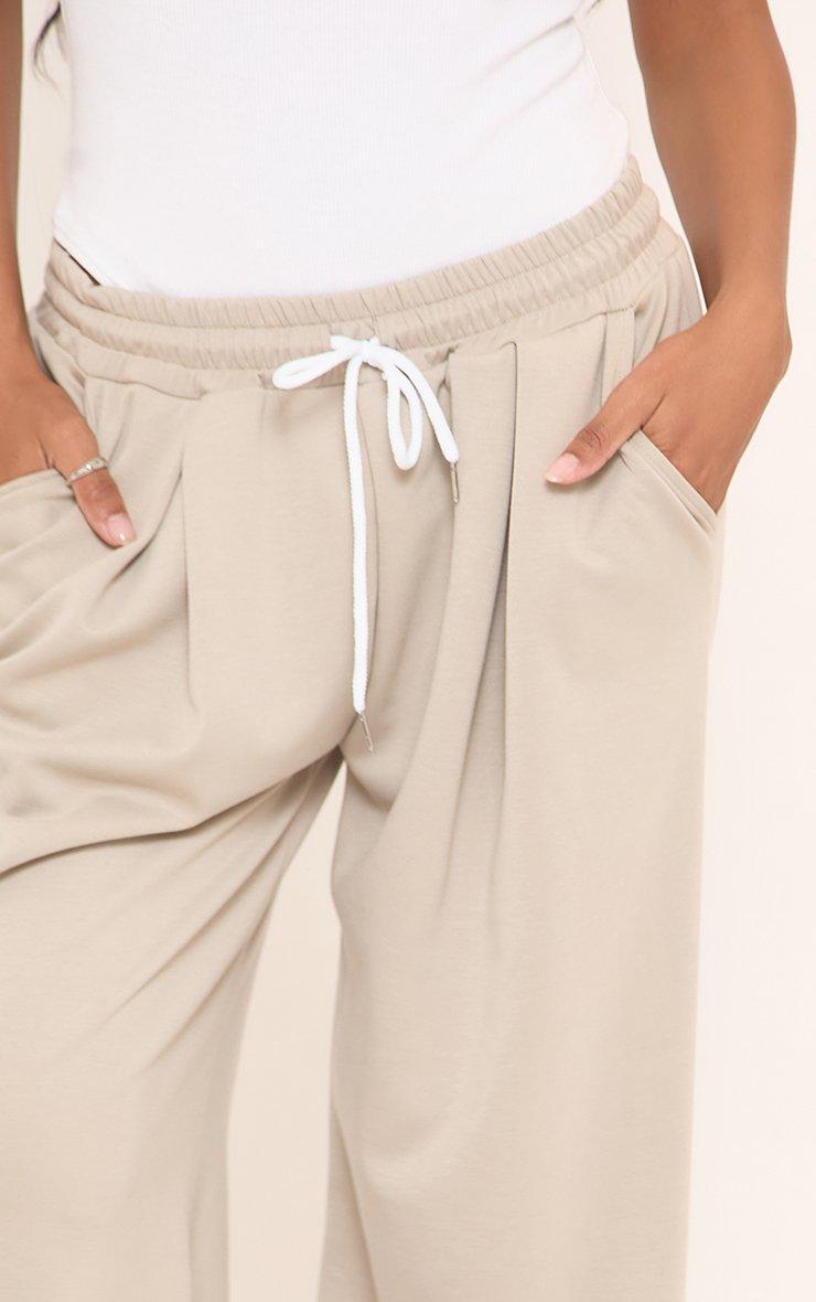 Tie Waist Pintuck Detail Wide Leg Joggers In Stone
