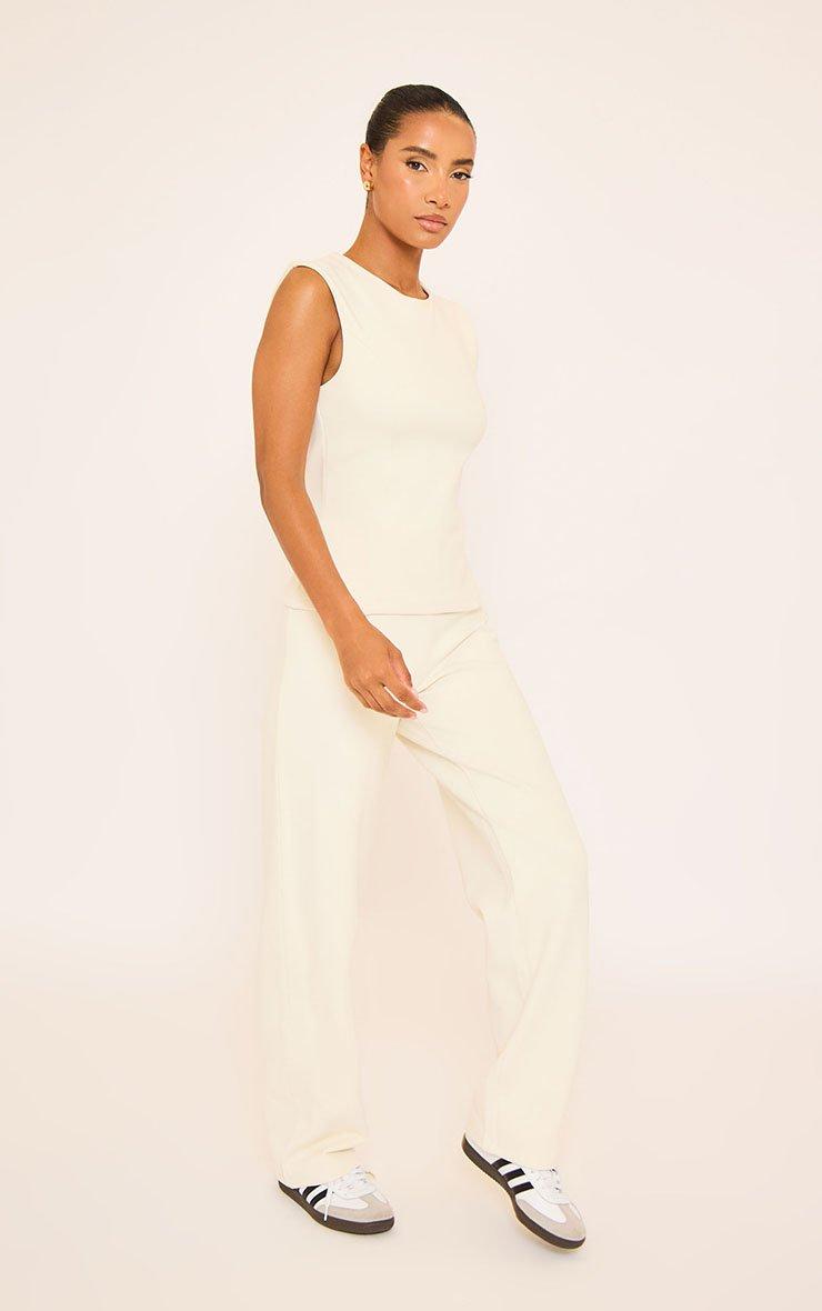 Mid Rise Tie Waist Detail Wide Leg Interlock Joggers In Cream