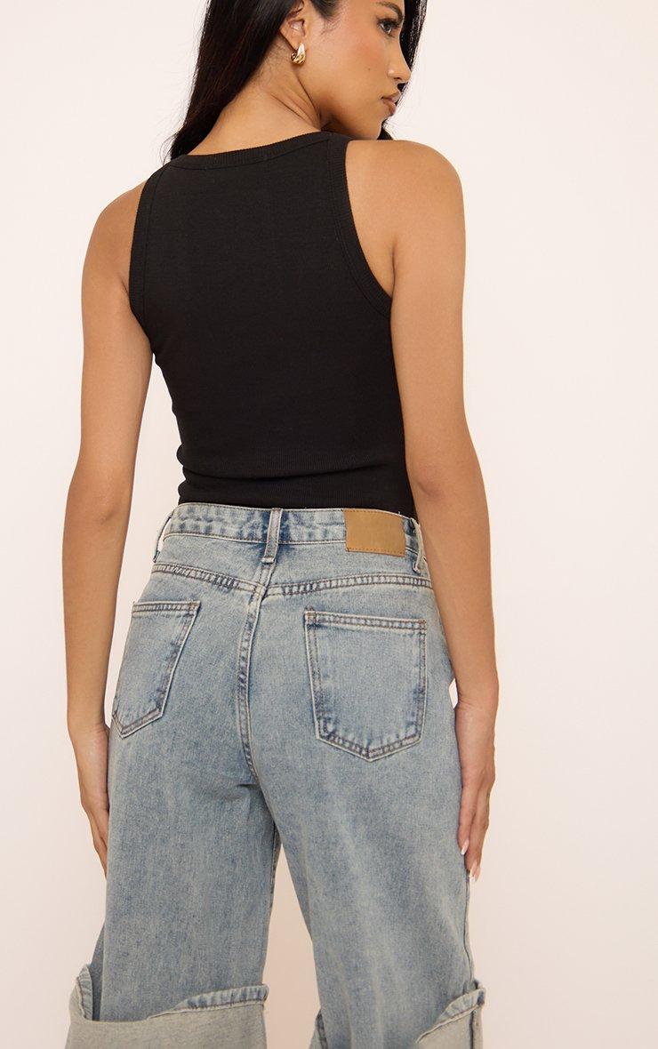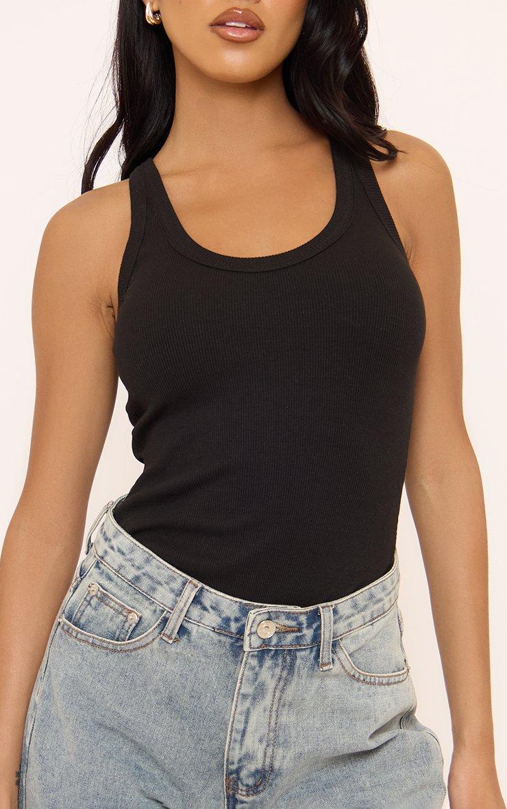 Sleeveless Scoop Neck Bodysuit In Black Ribbed