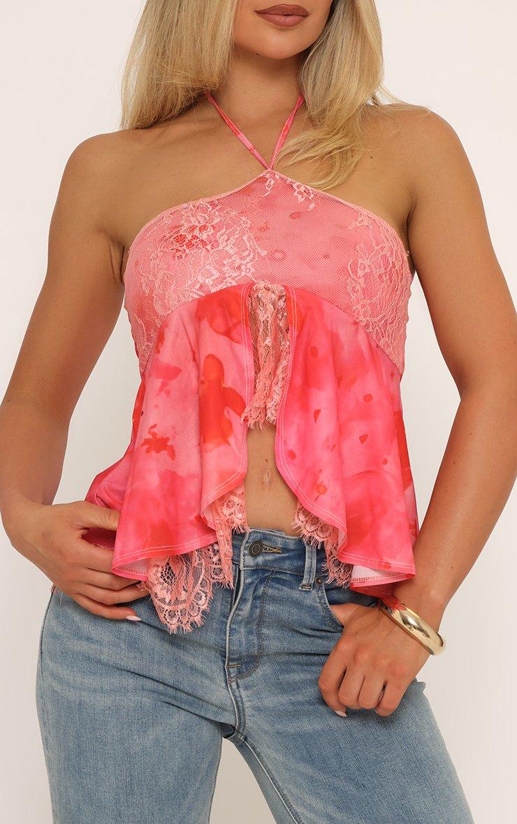 Add a splash of colour to your look. Featuring a pink multi print slinky material with bandeau styling and frilled hem detailing, this top is all about playful energy and statement style.