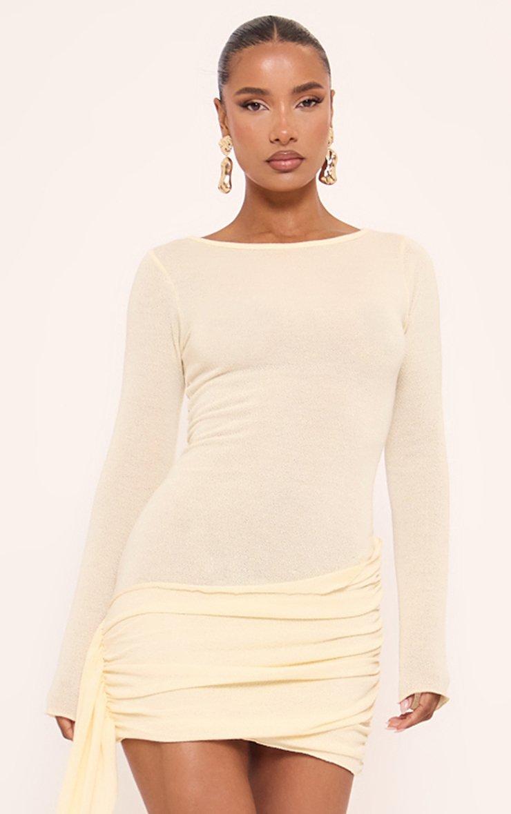Long Sleeve Drape Detail Mini Dress In Yellow