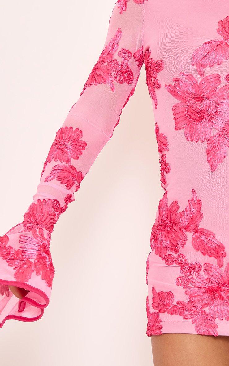 Long Frill Sleeve Mini Dress In Pink Floral Print