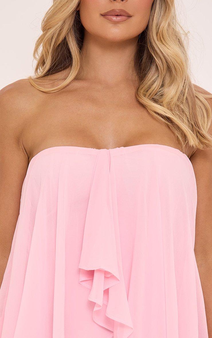 Bandeau Draped Frill Detail Floaty Mini Dress In Pink