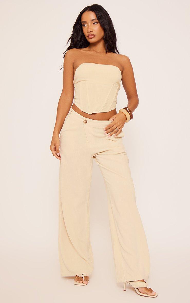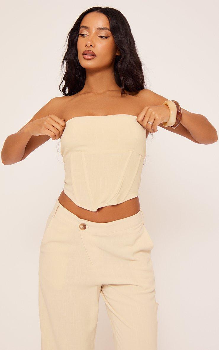 Bandeau Corset Detail Top In Stone Linen