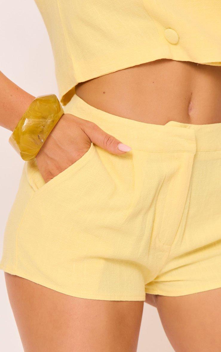 Serve sunny vibes, doll! Featuring yellow linen fabric with mid-rise fit and mini shorts detailing, these bring fresh, chic energy perfect for warm days with attitude.