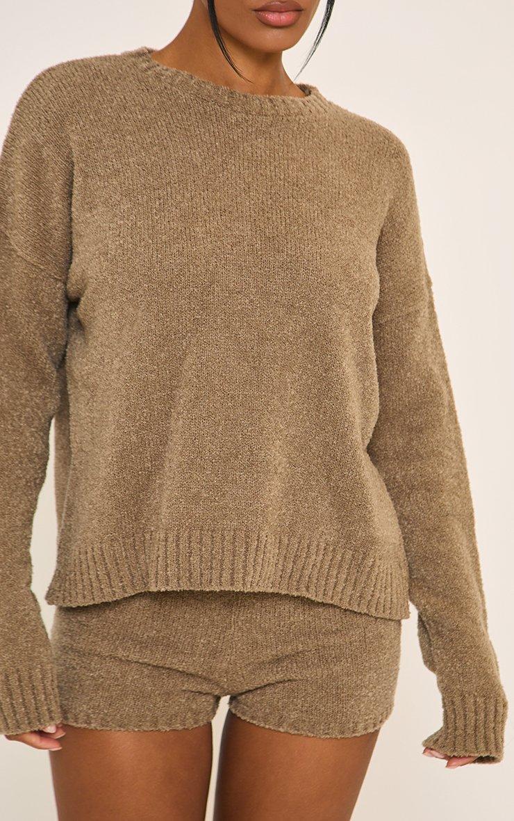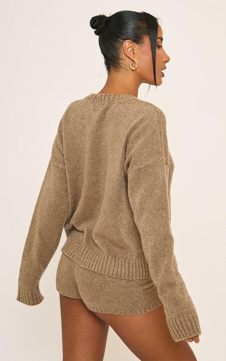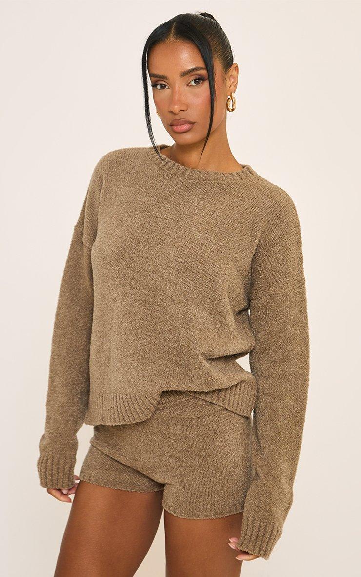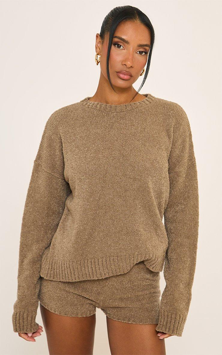 Long Sleeve Crew Neck Sweater In Brown Knit