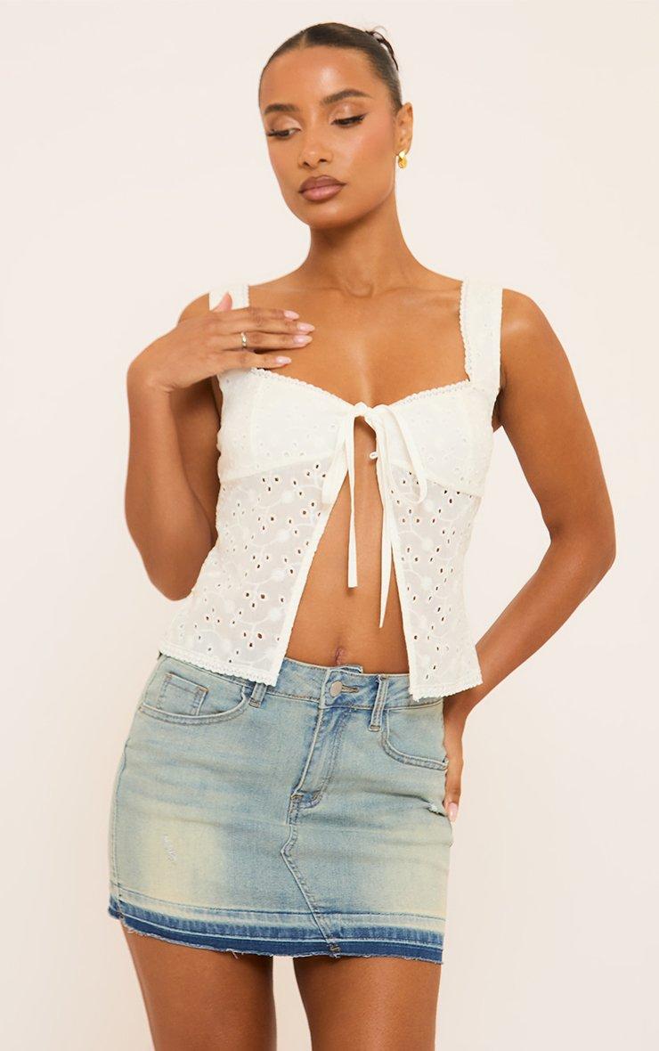 45810 Broderie Split Front Top In White