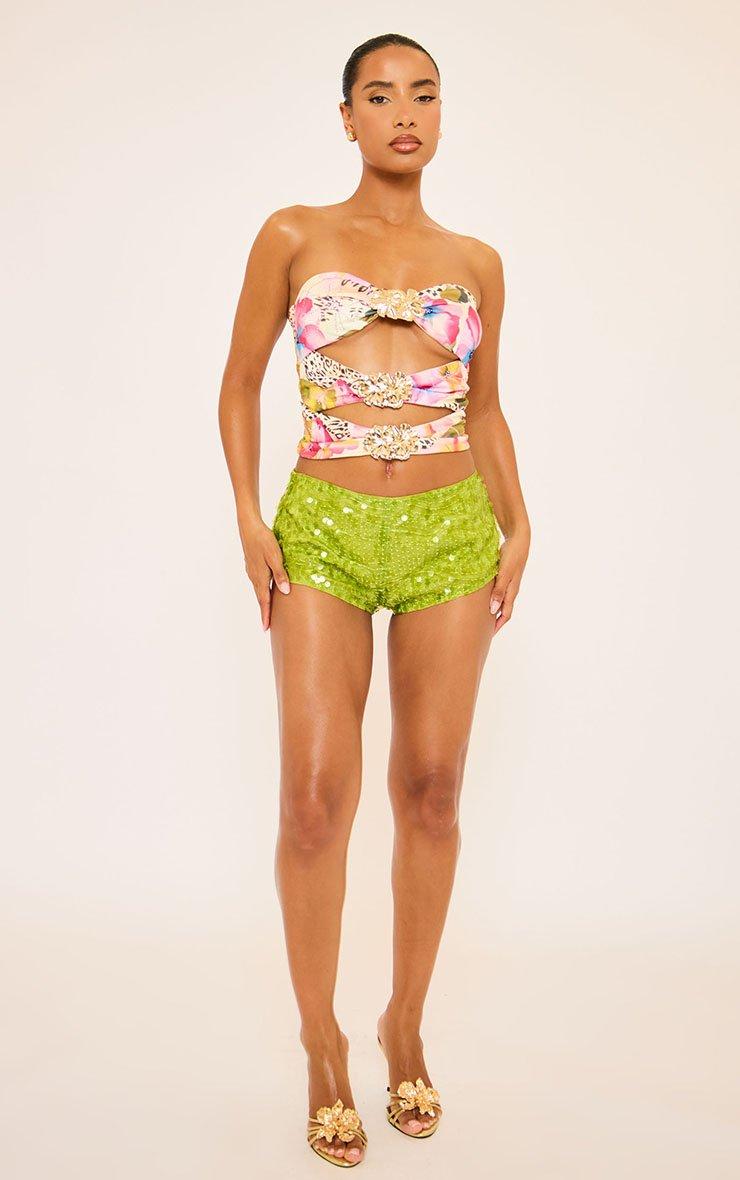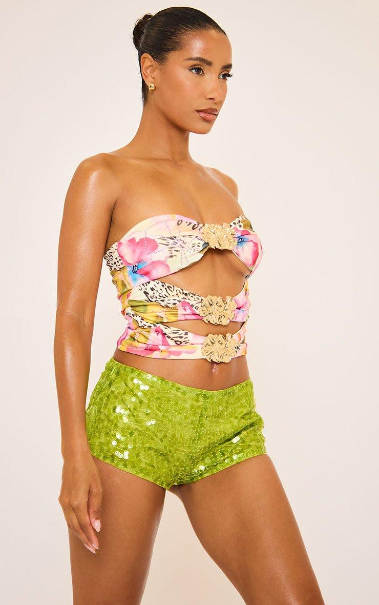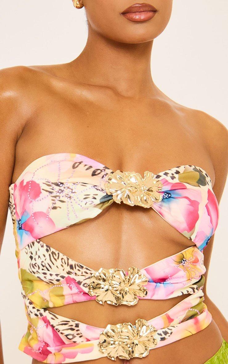 Bandeau Cut Out Trim Detail Top In Multi Hot Fix Print