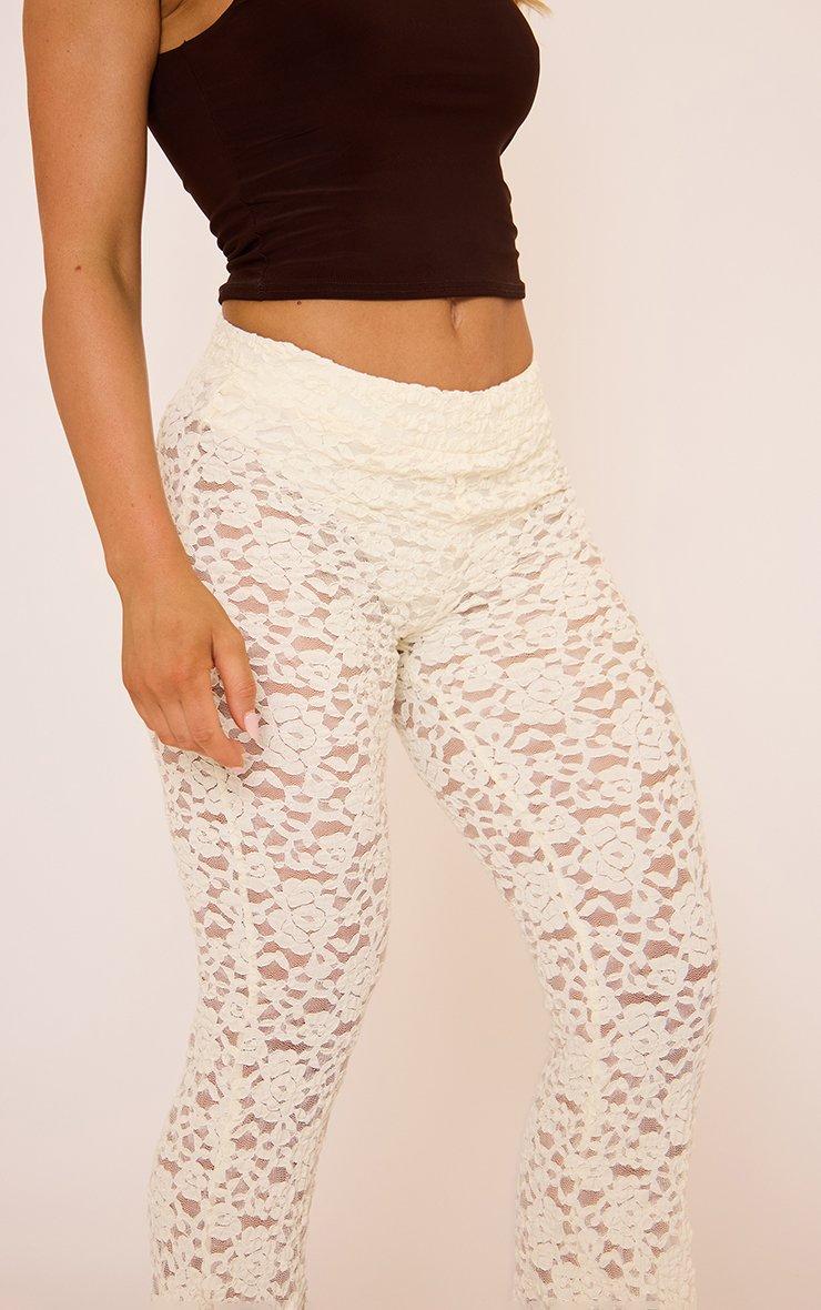 Mid Rise Elasticated Waist Flared Trousers In White Lace