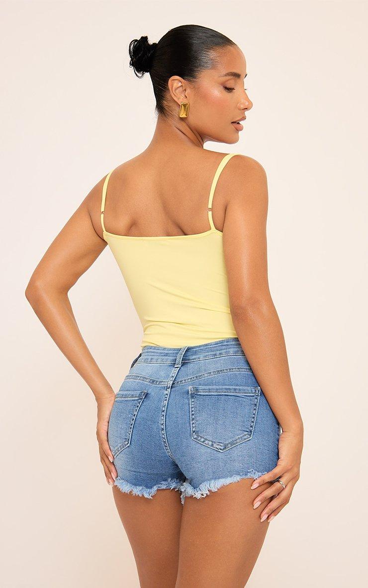 Mid Rise Distressed Hem Detail Shorts In Blue Denim