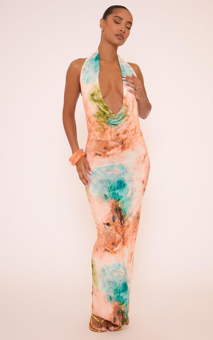 Cowl Neck Maxi Dress In Multi Tie Dye Print