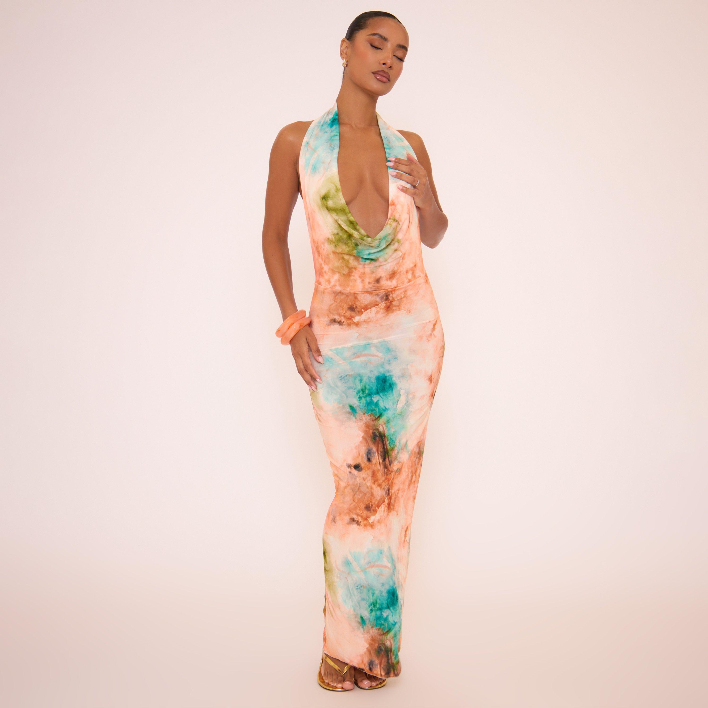 Ready for summer vibes, doll? Featuring silky fabric in a bold multi-colour tie dye print with cowl neck detailing, this maxi dress brings effortless chic and a splash of fun for sun-soaked days.